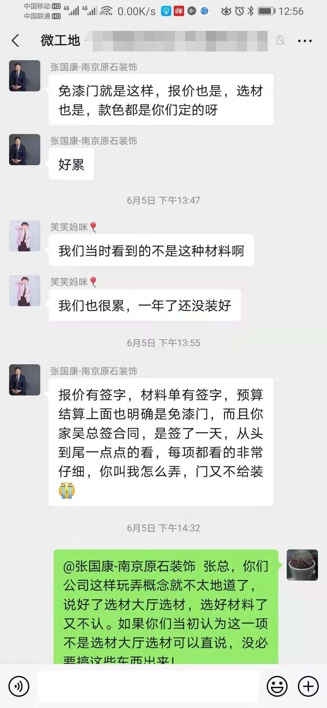 装修公司回复:报价清单上的材料都是免漆门材料,门去年就送过去了,不给安装,钥匙也收起来了。如果实不喜欢,可以换,然后补差价。消费者不同意,因为这件事,反复多次沟通,无果。原石装饰愿意再与消费者沟通一下。 | 2021-06-24 |