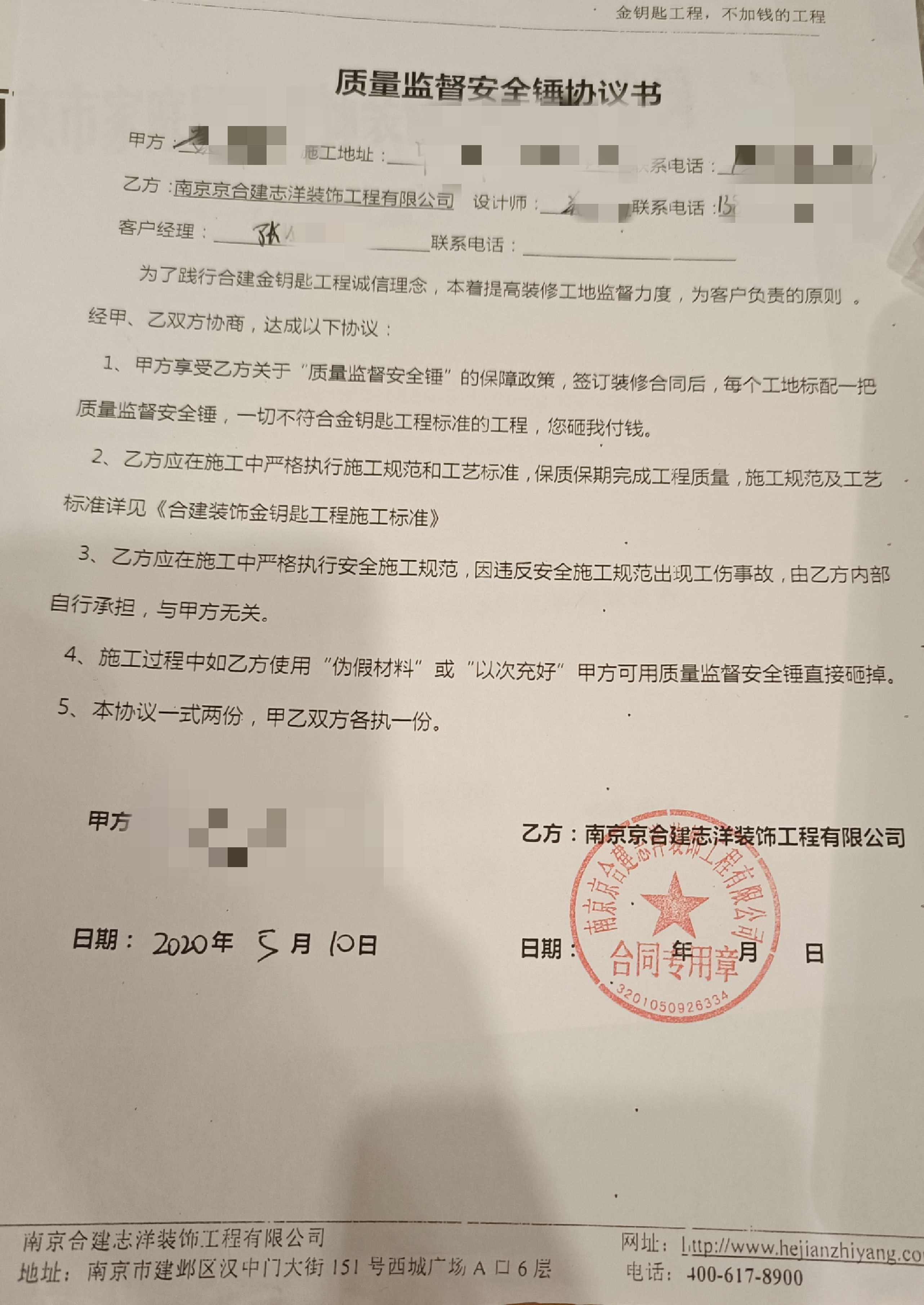 诉求:我们要求京合建志洋装饰承担墙面重刷的人工费用,我们自己买乳胶漆,这要求不高,希望“侯总”也能用行动践行当时合建“金钥匙工程”的承诺。关设计师:13814026440
