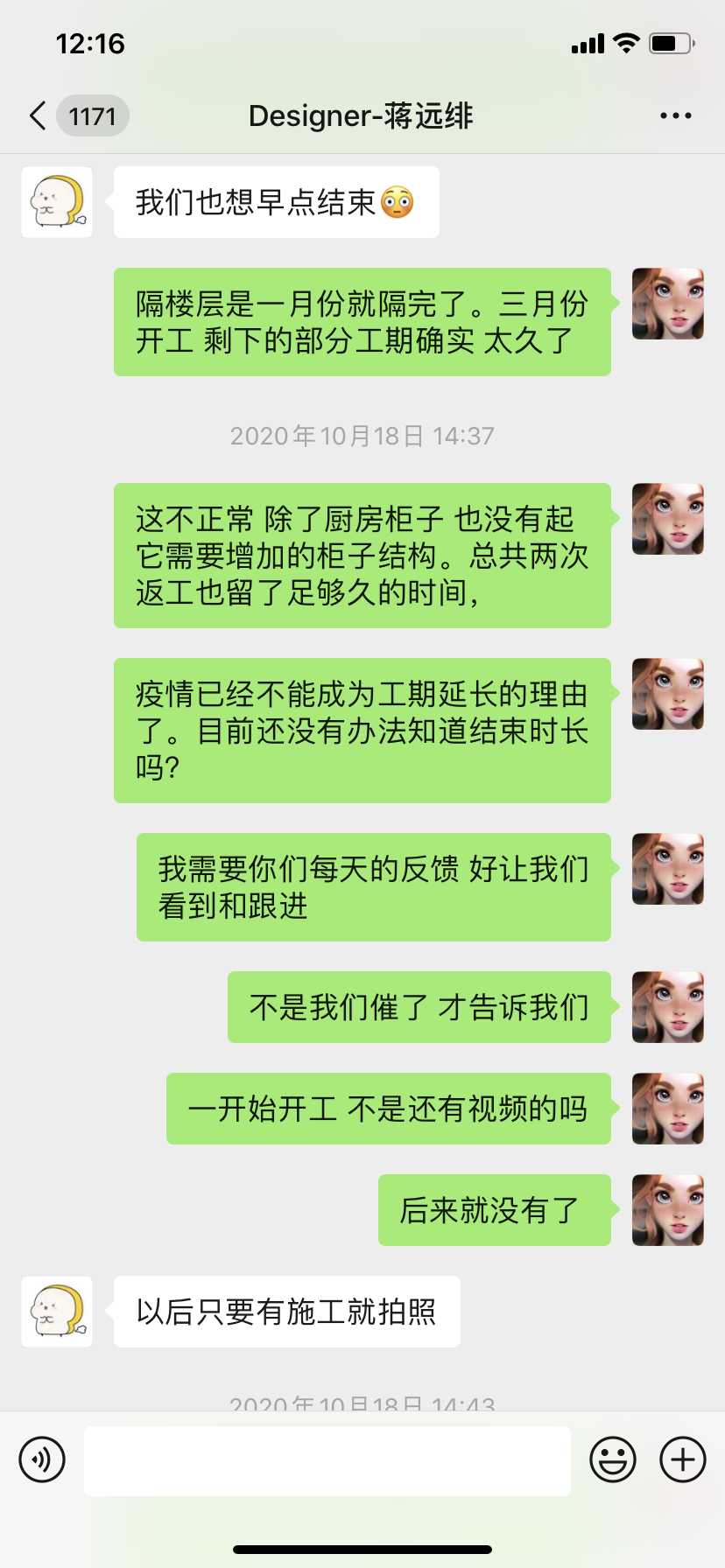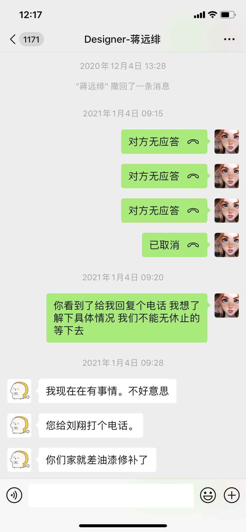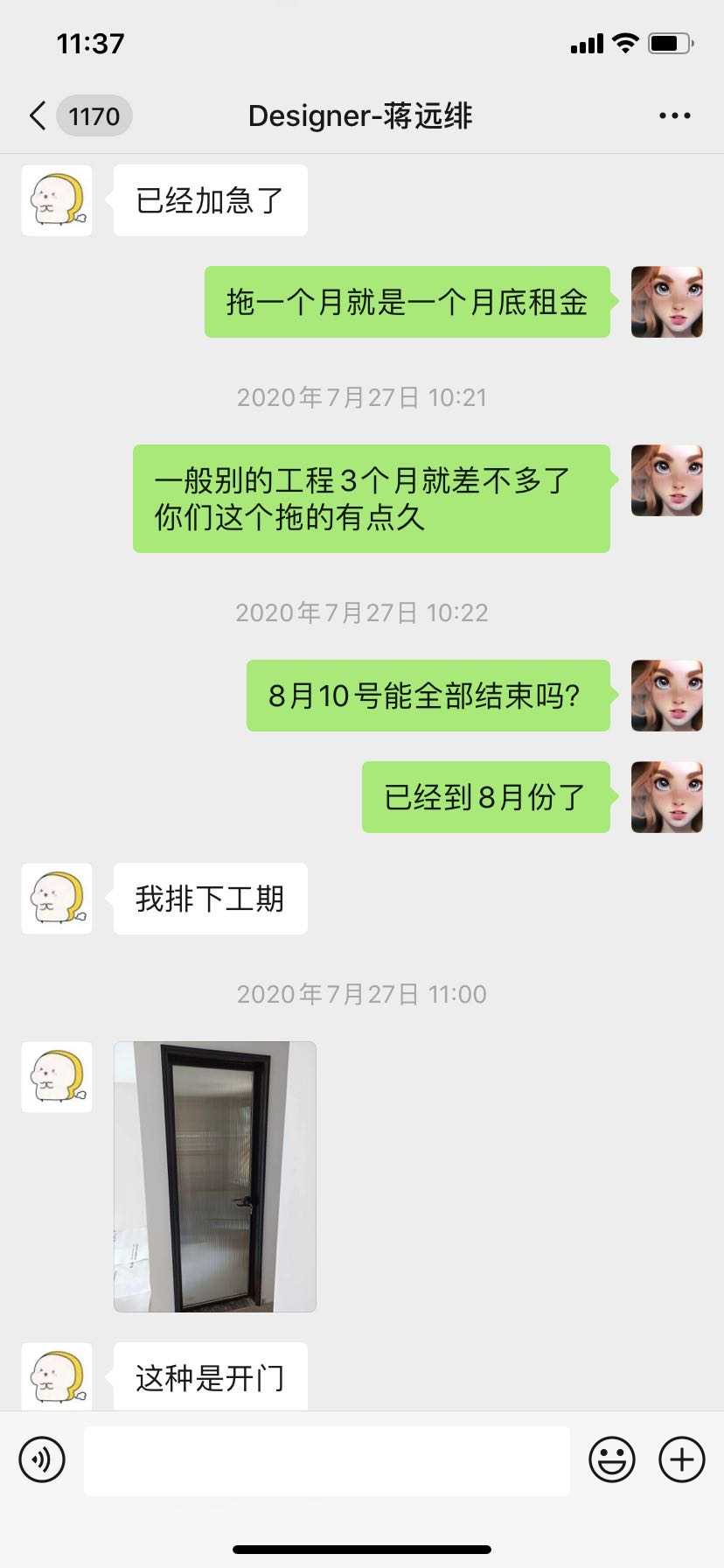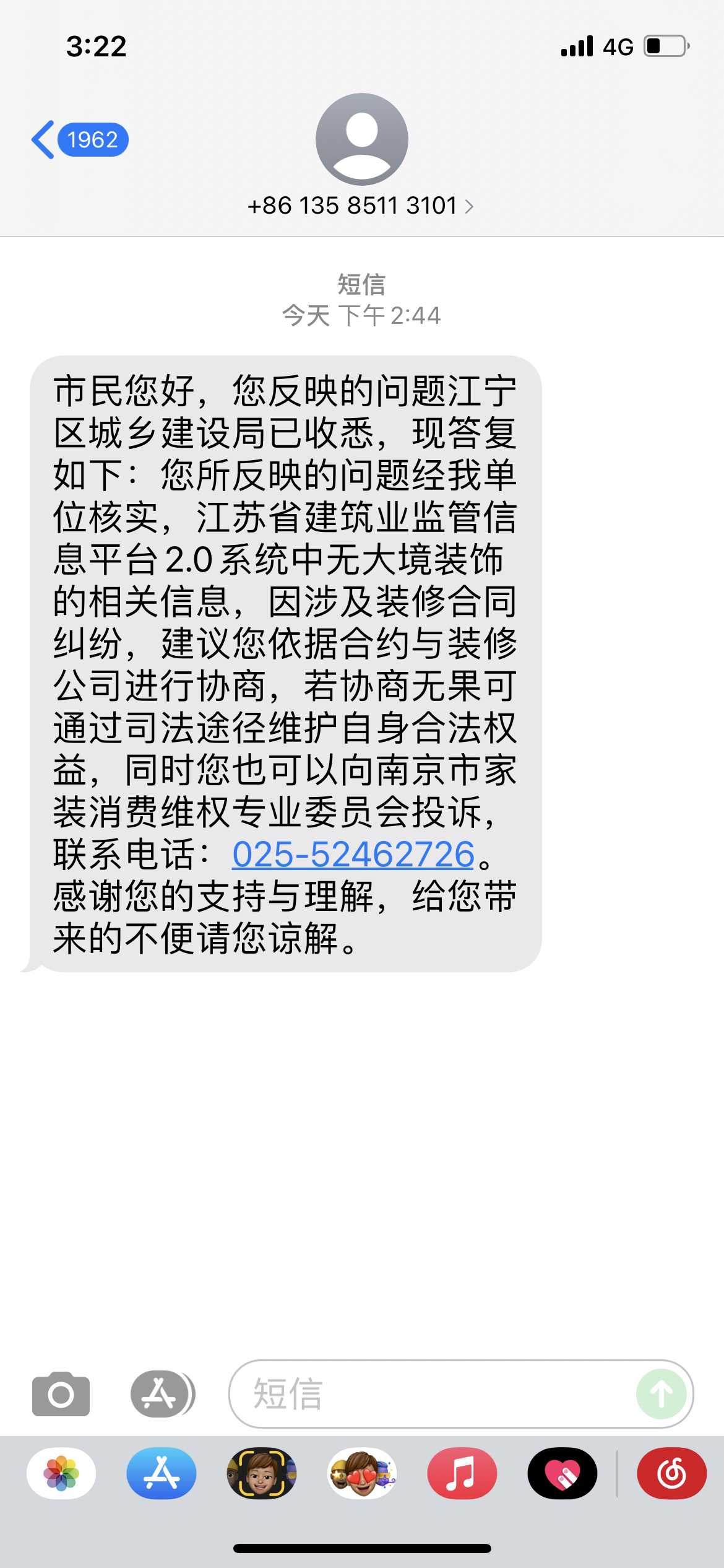 2019年12月底,我们业主在拿到毛坯公寓后,因为着急出租急于装修,大境装饰当时就在售楼处摆点,并说自己就是样板间装修团队。出于对其信任,于2019年12月26日前往大境公司约谈。并于当晚签订装修合同。 2020年1月,工程开工,楼板开始浇筑。2月因疫情和新年到来,工程与三月份也陆续开工了。三四五月份的交流还算顺畅,也会时不时发装修视频到大群里让业主了解进度。 2020年6月份,装修在微信沟通上开始变得困难。我姐姐是房主,常年在上海,作为家中亲姊妹我在南京帮忙监工。设计师和施工方都是大境公司的员工。我偶尔去工地,工地上都没有在施工,而且工程很大一部分都没有开始,但已经接近最后六月底的完工约定时间了。因为对方在之前强调整个公寓要求六月份完全施工完毕,后面工程队很难入驻,考虑到时间限制,也是我们当初愿意跟大境签约的原因。 可是到六月份工程进度已经明显不能完成。 从七月份开始,我们在微信群和跟设计师的沟通中,已经开始强调希望不要继续拖延工期,并予以放宽。七月期间我们约见进行所谓验收,发现工程有很多不尽如人意随意上墙的情况,连施工基本要求都不能达到,于是开始沟通如何整改,并书面具体阐述要求与设计师,希望她能尽到基本装修质量,我们没有添加任何额外要求。1是因为我们着急装完对外出租;2是因为他们已经超出了约定时间。并且提出要求,8月31日作为最终的验收完工时间。对方口头答应整改,但是自然看不到施工进度加快。 2028年10月份,设计师和施工方面才在他们公司领导的介入下,愿意频道沟通并在微信中承诺加快进度,但是真正完工时间一直到2021年1月26号。一个小公寓的整个工期长达一年多,难以置信。这中间还有很多令人费解的操作。对方但凡要求付款,我们立马付,说是工程款到位了才能开始装修,前后已经支付,10万5千多元,还有2万多余款,作为约束双方行为款项。 对于我们业主来说就是冲着他是样板间装修团队去的,可是却屡屡告知原先材料没有了,买不到,要更换材料,我们也不得不答应调整。说楼梯他们装不了,他们去请了楼梯的公司单独做楼梯,而且是找好了事后告知我们,对于我们来说只要赶紧施工就行,要求已经一再降低。 在我们业主一再妥协的情况下,工程终于在2021年1月20多号,基本完工,距离我们当初约定时间过去了半年多。回想整个过程,经常去施工现场,都是停工状态,如果不是因为还有尾款约束,怕是最终完工遥遥无期。目前剩2万多近3万余款未付,我方希望协商,因为实际已经造成了包括租金在内的经济损失,并希望从减免余款作为补偿的角度来弥补对我们造成的经济损失。 但是在交涉过过成功,大境公司负责人几乎推卸了所有责任,始终不愿意承认长达半年拖延工期的责任。并语气蛮横,威胁我们要不赶紧付尾款,要不就去现场拆除我们的设施。 以上陈述均有微信聊天记录截图,他们施工的态度一目了然。后来设计师本人承认,他们在整栋楼内拿了70多套房屋同时装修,而我们家是最先签订合同,却是最后交付的一户,可能客户太多而无暇顾及我们这种人在外地而又好说话的客户,对此,我们十分气愤!后来我们又发现其实真正的样板间装修团队并非他们,因为其他业主的房子有跟样板间完全一致的施工。这更加让人气愤,也就是说我们可能遭到了欺骗! 今天从12345得知,这家公司在江苏省建筑业监管信息平台上并未登记过。作为消费者,弱势群体,请贵方以已有的经验来帮助判断,协调,并保障我们的合法权益!图片有限,不能说明问题,一整年聊天记录我们有,还有后来跟她们负责人当面协商录音!合同发现是个没有签订日期和收尾日期的不公平合同,但是其中提到工期为120个工作日,也就是说从一月份开工,怎么算都远远超时了!王 15651611218
