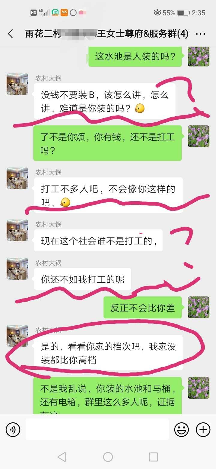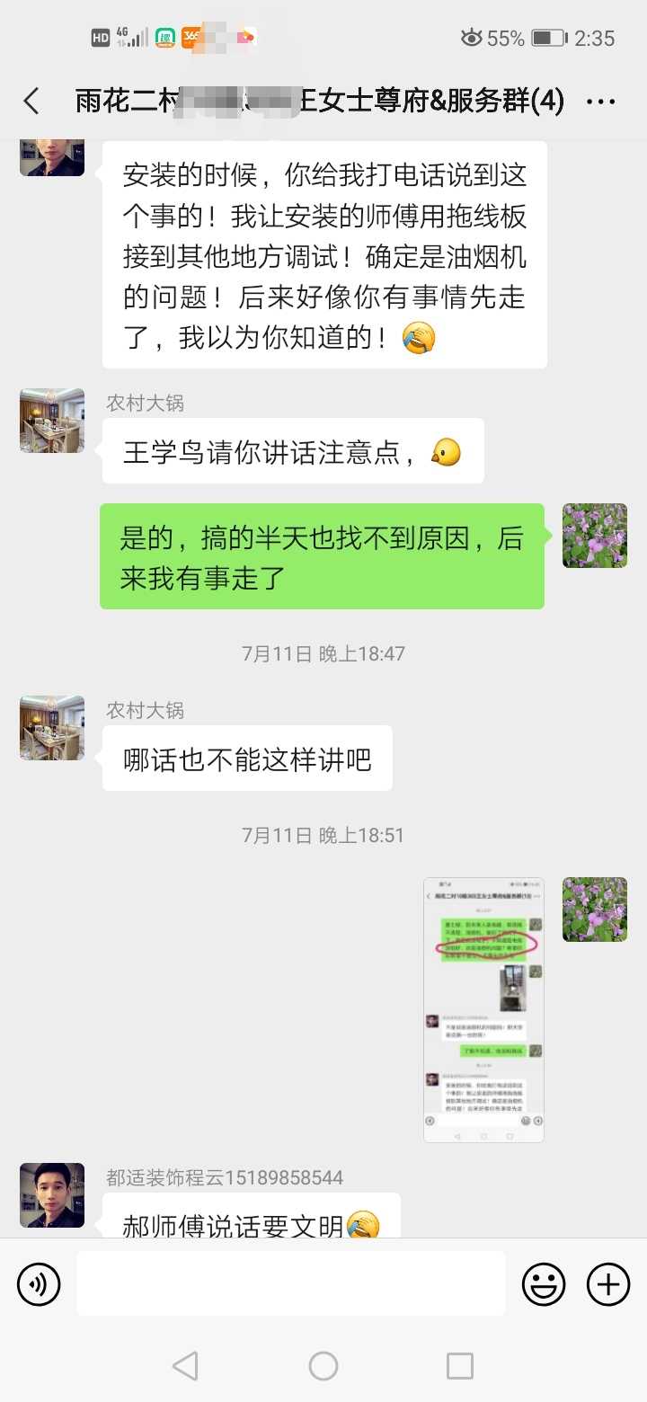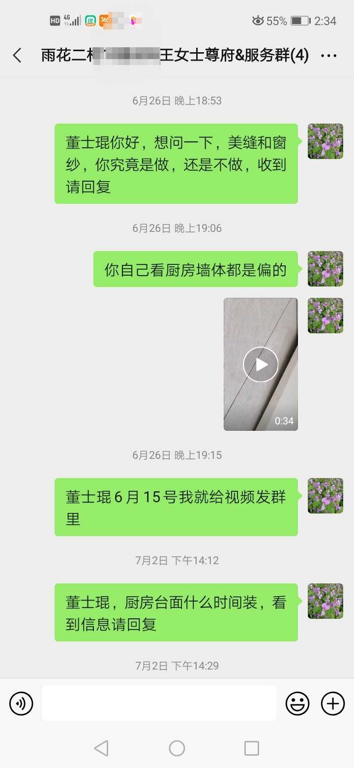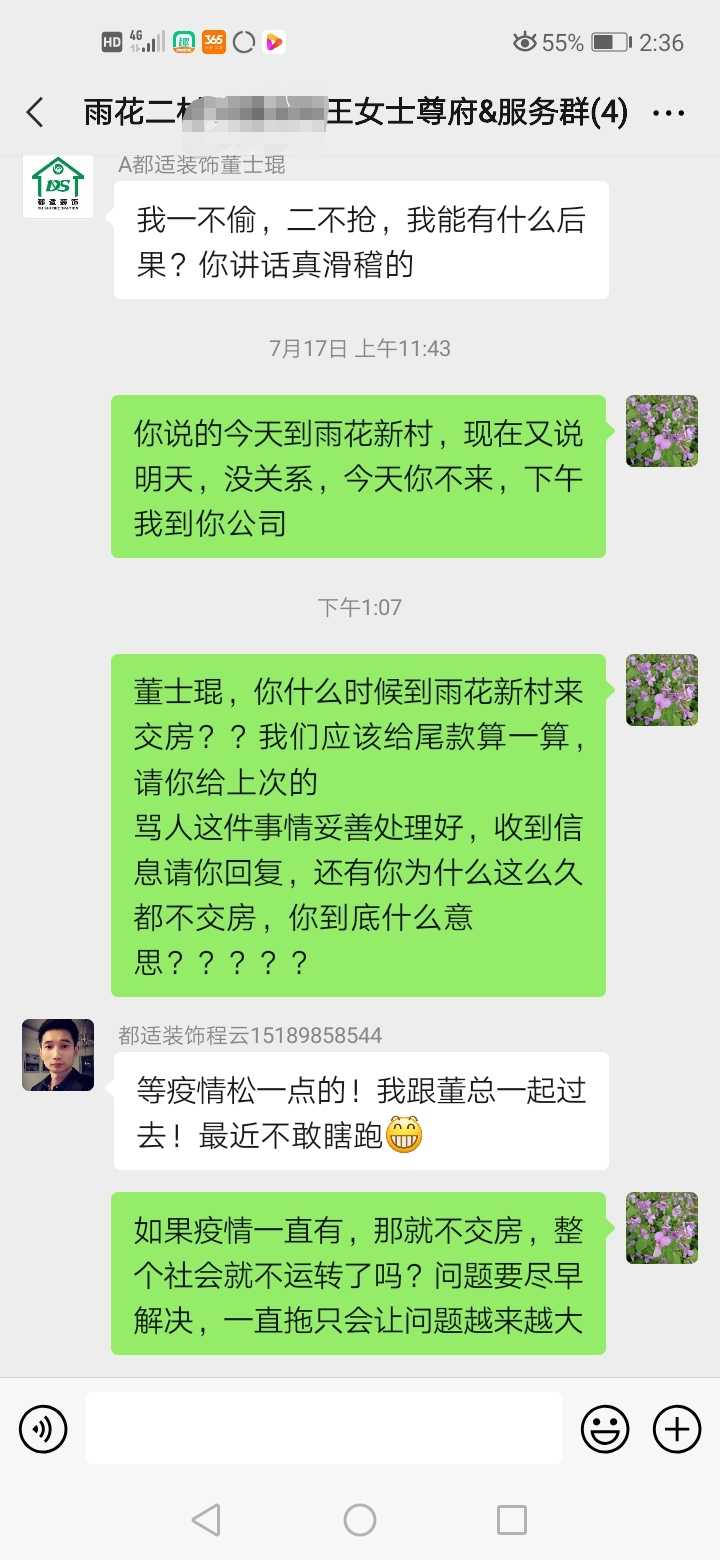 4、房主在装修群和他们沟通问题,被公司员工辱骂