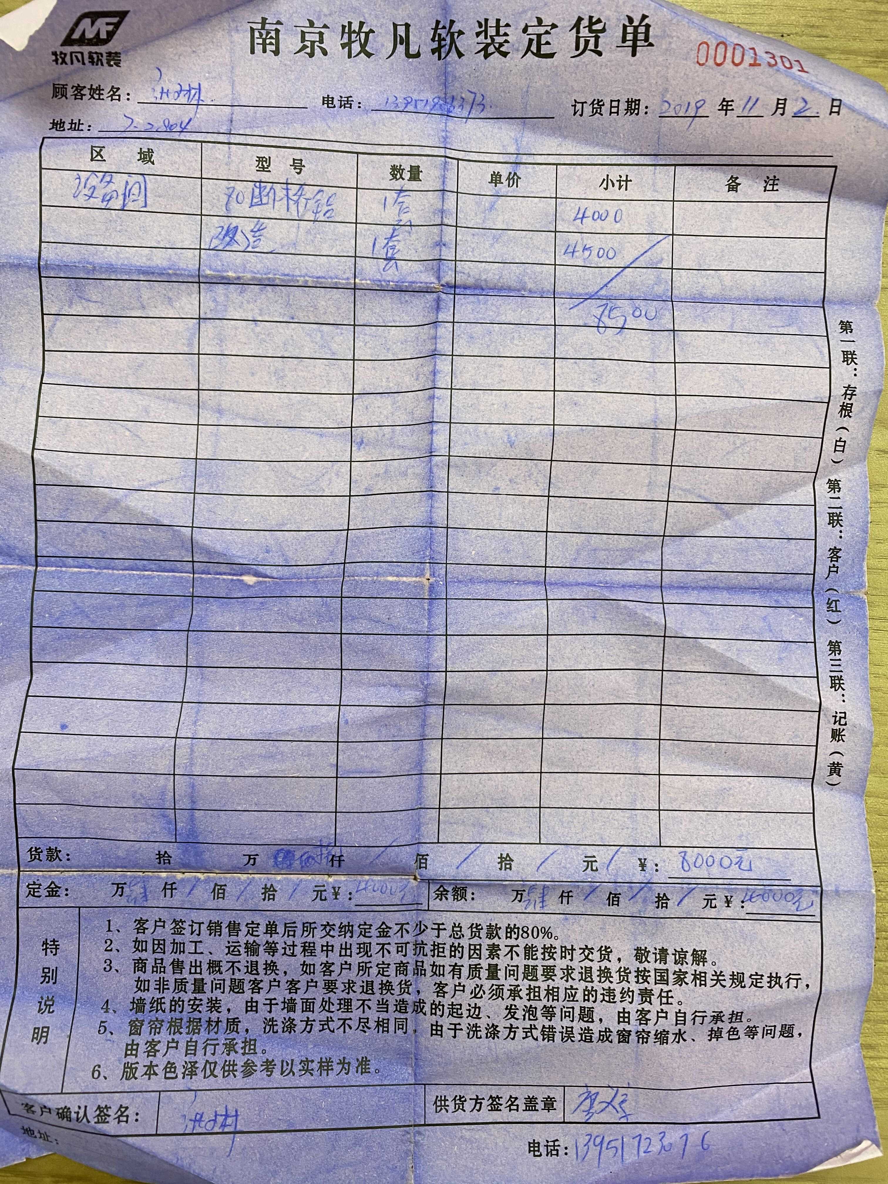 南京牧凡装饰材料有限公司负责人答应与消费者联系并处理,维权站跟进 | 2021-08-06 |