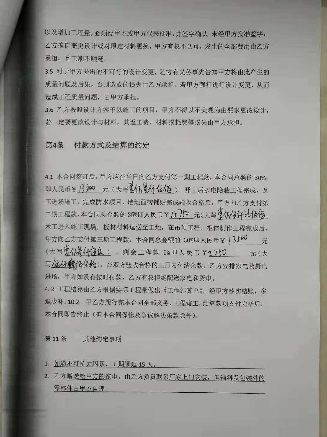 我们听信了这些宣传,在2020年9月6日与该装修公司签定了装修合同,约定装修工期3个月,在装修过程中,发现了很多质量问题,装修材料以次充好,偷工减料,多次向公司实际控制人潘晓凯反应问题,一直拖着不愿整改,整改工程拖拖拉拉,经常电话不接,微信不回,为此事我们去汊河装修公司找过多次。他都不处理,直到现在,距合同约定的完工日期已过去8个月了,我们的装修工程进度第一阶段才结束。