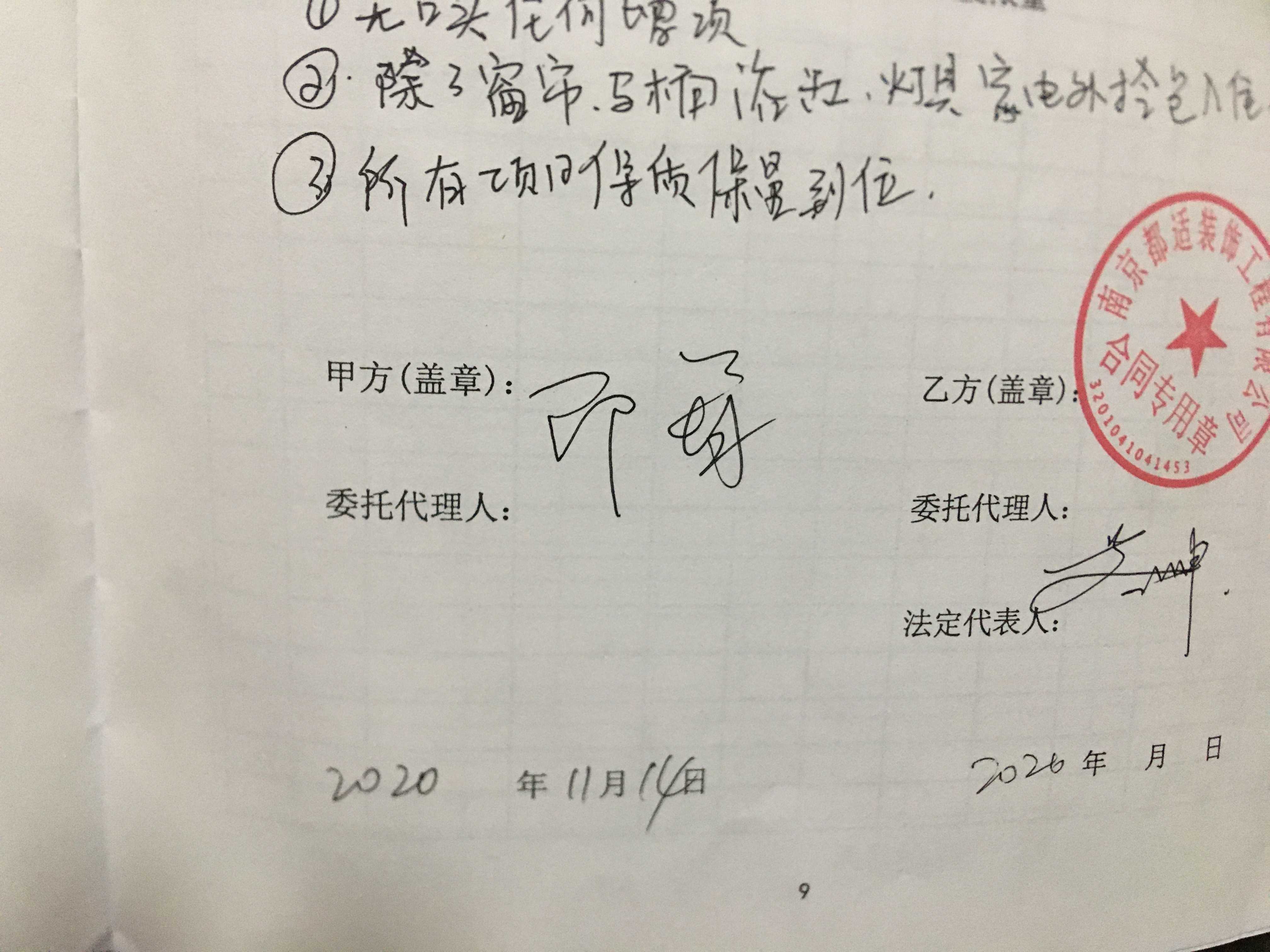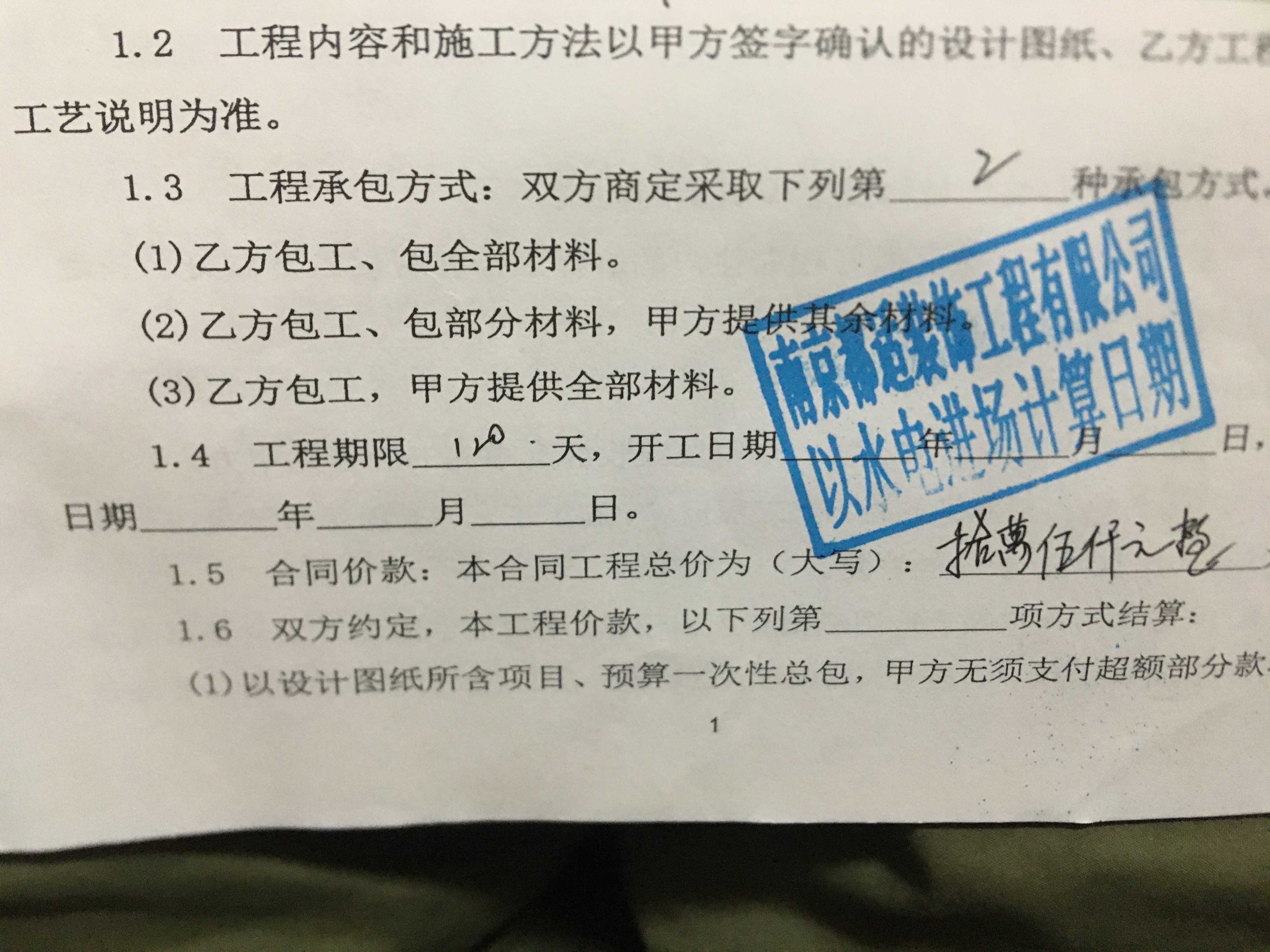 20.11.20,120天工程结束。全包,目前只能水电完工,公寓,楼梯完工。合同上注明,拎包可入住。10.5万的款,已支付70%,目前50%的项目还没有做完。木工还没有完成,瓦工,水电都有问题。