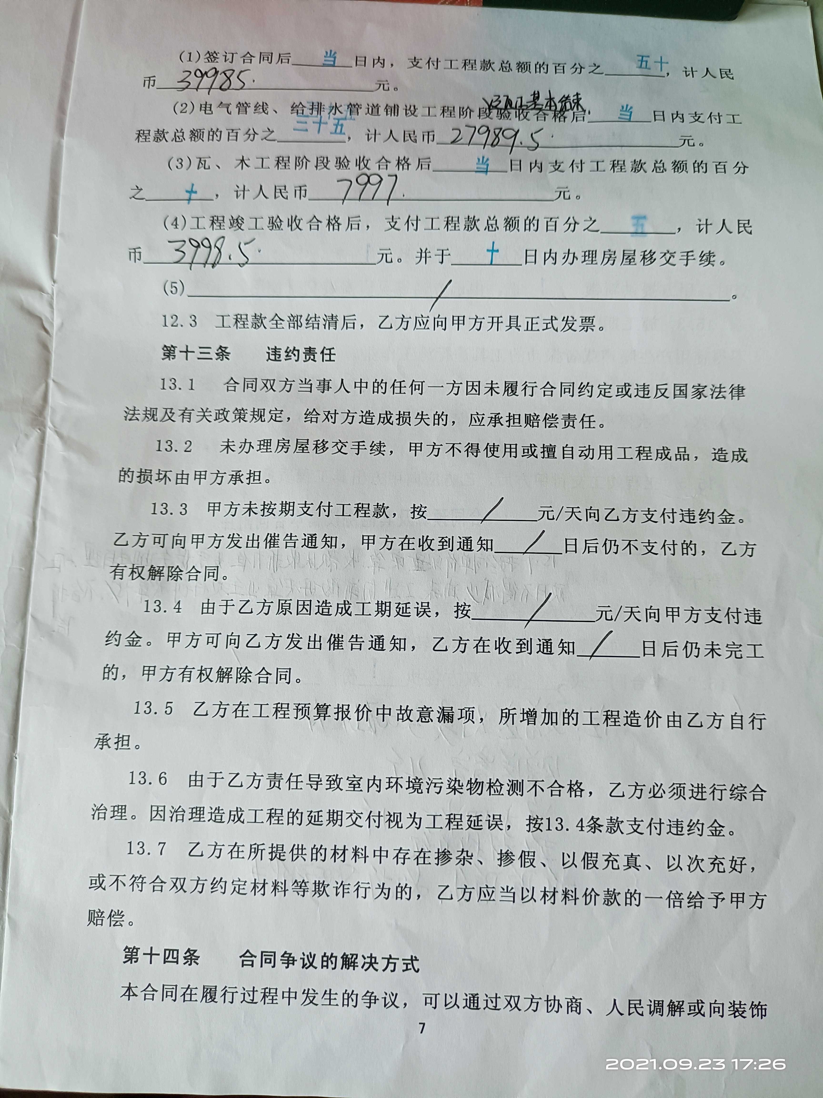 装修公司愿意与消费者沟通协商处理。 | 2021-09-26 |