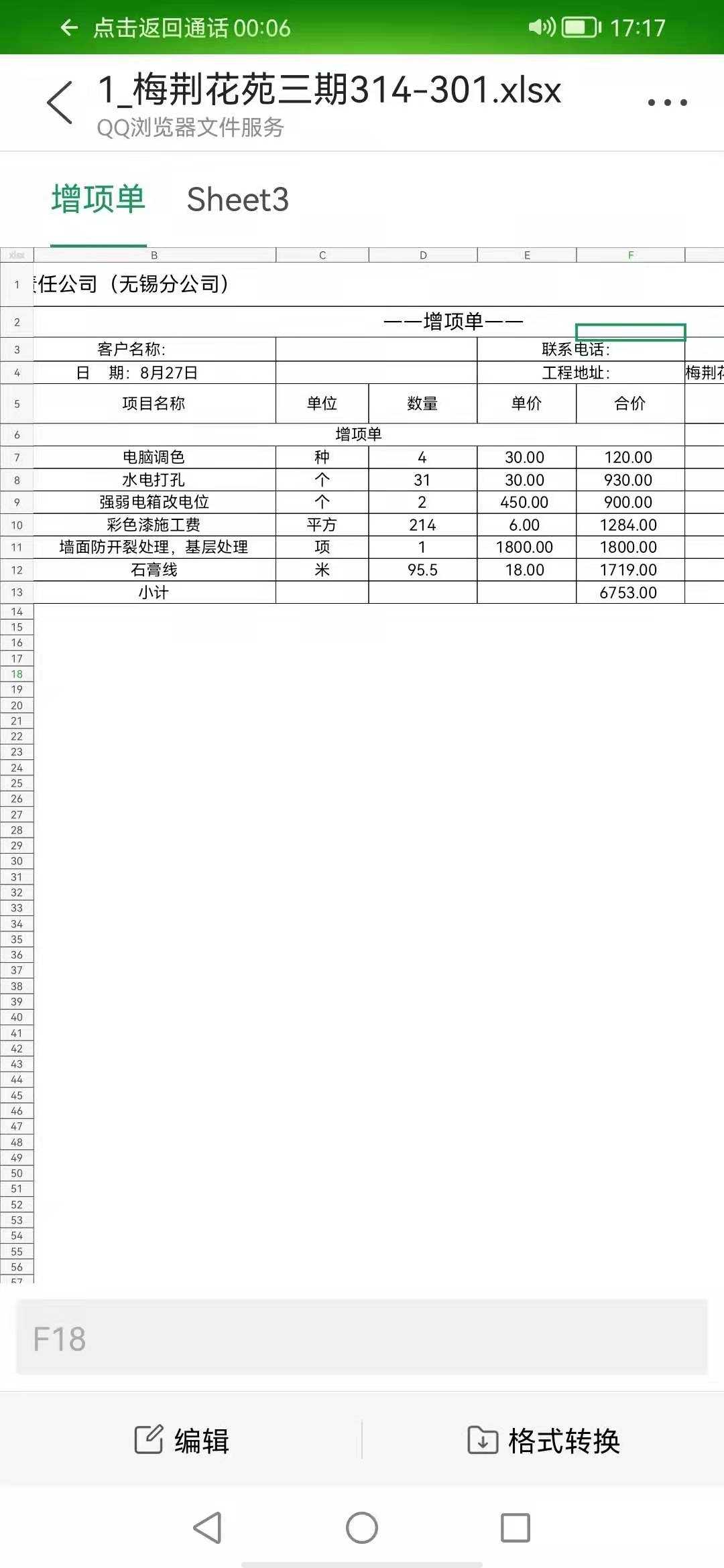 2.恶意增项,装修增项不断,该公司在定制柜子下单时以测量尺寸不足为由收取六千元,在油漆即将结束时列出打孔费,电箱移位费,墙面防开裂费等近五千元,安装阶段以台盆柜,内卫移门,电视背景墙预算不足为由让我补交差价.