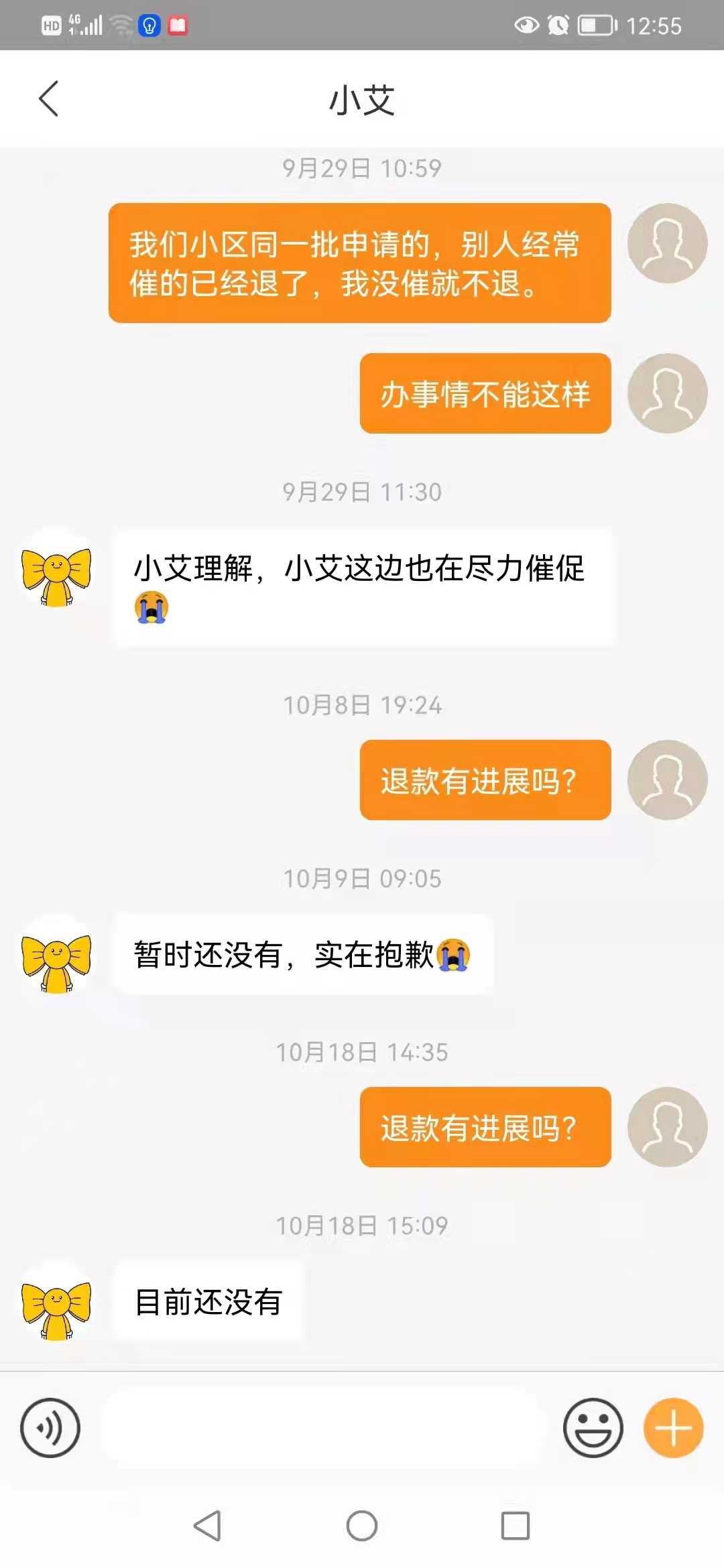 我是河南漯河建业云熙府小区业主,在买房开盘初,建业联合艾佳生活(总部艾佳生活在南京),让购房业主交5000元装修意向金,承诺的是交房前如不想艾佳装修,交房前3个月随时给退款。我们小区是2020年8月30日交房,后来联系客服说是要申请退款日起四个月才能给退,后来再联系又说是1年后可以退款。到现在2021年10月份,拖了整整1年多了,言而无信,欺诈消费者!打客服电话、联系app客服,要么不接电话要么一直推脱,各种搪塞敷衍,而且没有任何的退款时间安排,遥遥无期。我在申请退款未果的情况下,只能向您投诉,希望能帮我们解决退款问题。(我不知道对方的信息,只能填写我的信息了)