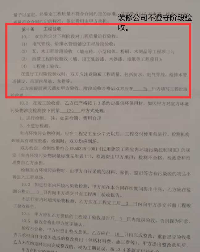 本人和南京品格装饰有限公司于2021年9月份签订合同。合同约定全包。分3次付款。(后来我了解,其他装修公司都是分4次付款),在我付了50%的款。装修公司进场后,我才知道什么叫游击队伍。水电是蜘蛛网。瓷砖整面空鼓,且拒不整改。合同中明明约定分段验收合格。需要业主签字才能进行下一项,但是装修公司不遵守合同约定,继续野蛮施工。在后面与其他业主询问时。发现该公司本来约定4个月的工期。有9个月都没有完工的。有的还存在隔层混凝土开裂的情况。以上我都有截图证明。现在我要求与南京品格装饰有限公司解除合同。也告诫大家擦亮眼睛。南京品格装饰有限公司完全就是游击队伍。合同只有总价,装修合同中没有分项报价,全包的合同竟然对地板和橱柜保修一字未提。有问题只能仲裁,不能起诉,劝大家要实际看工地。别看宣传。