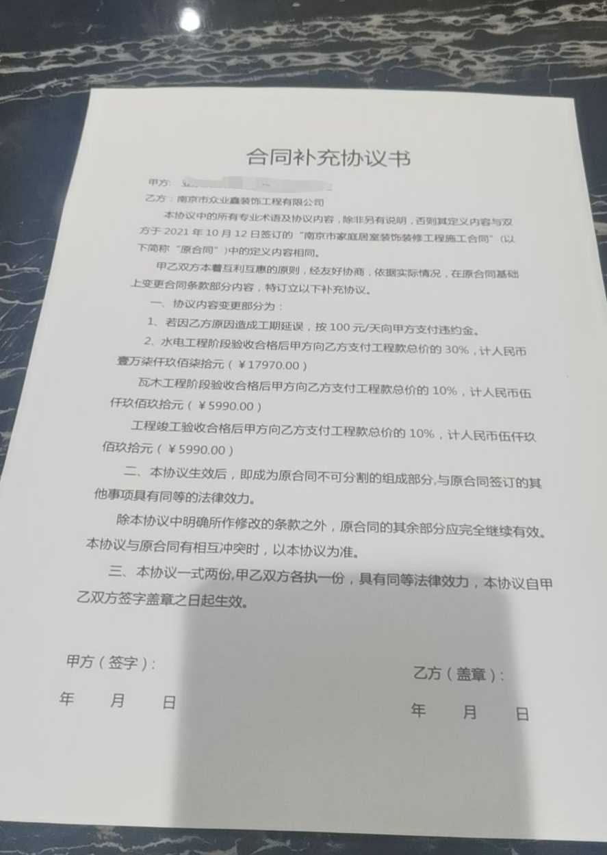 众业鑫装饰 所在卖场:南京装修公司,点击查看此卖场相关投诉信息