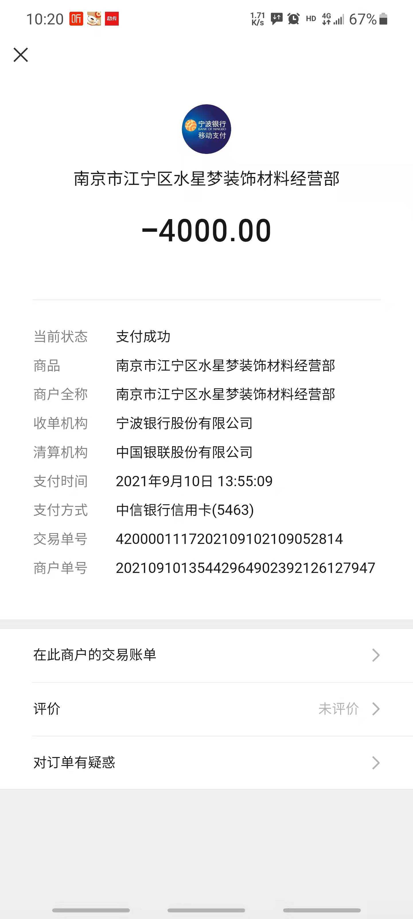 | 投诉类型 | 门窗五金 | 投诉人 | 许** | 被投诉单位 | 南京市江宁区水星梦装饰材料经营部 |
