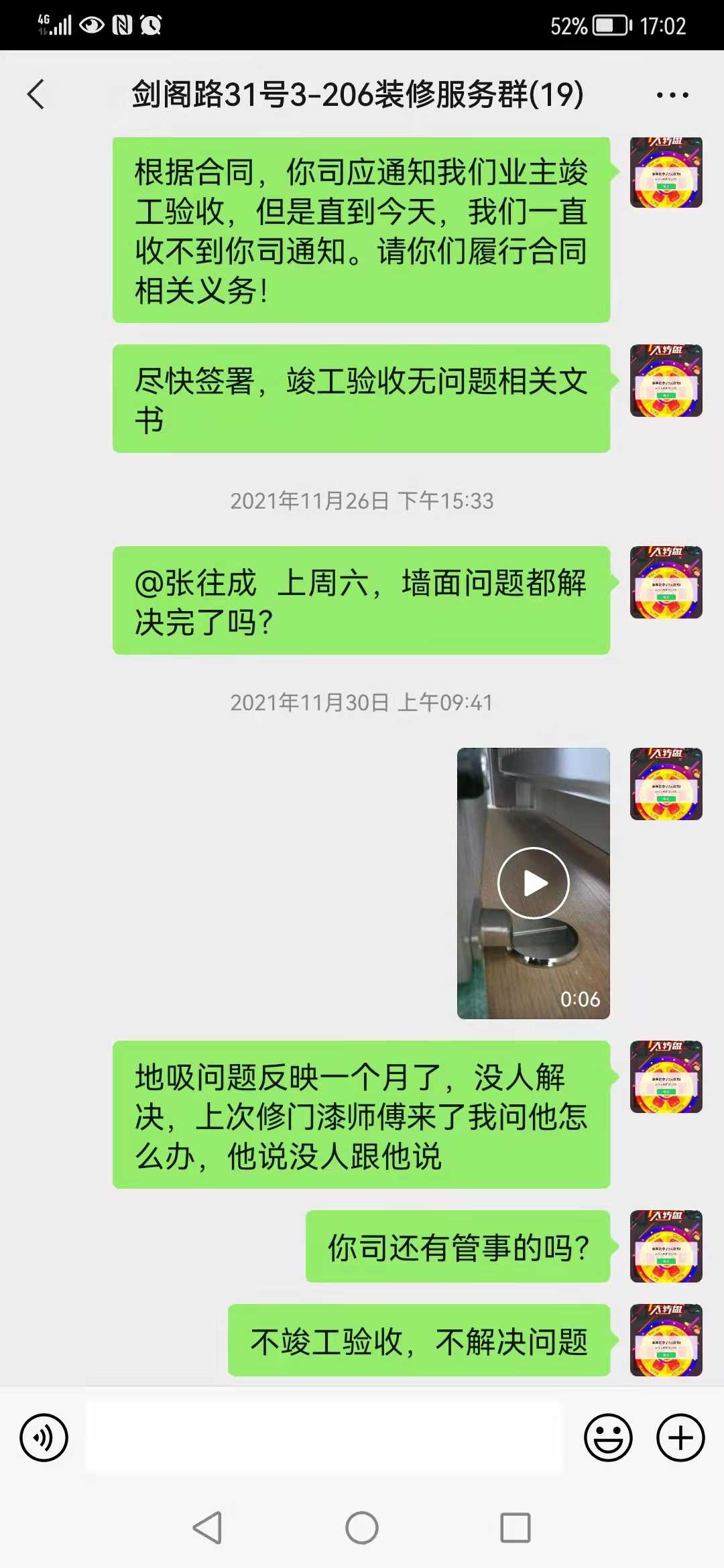 相关证据有视频、图片,以及剑阁路31号3-206装修服务群相关记录等,有关部门受理后,我可以进一步提供相关证据记录。