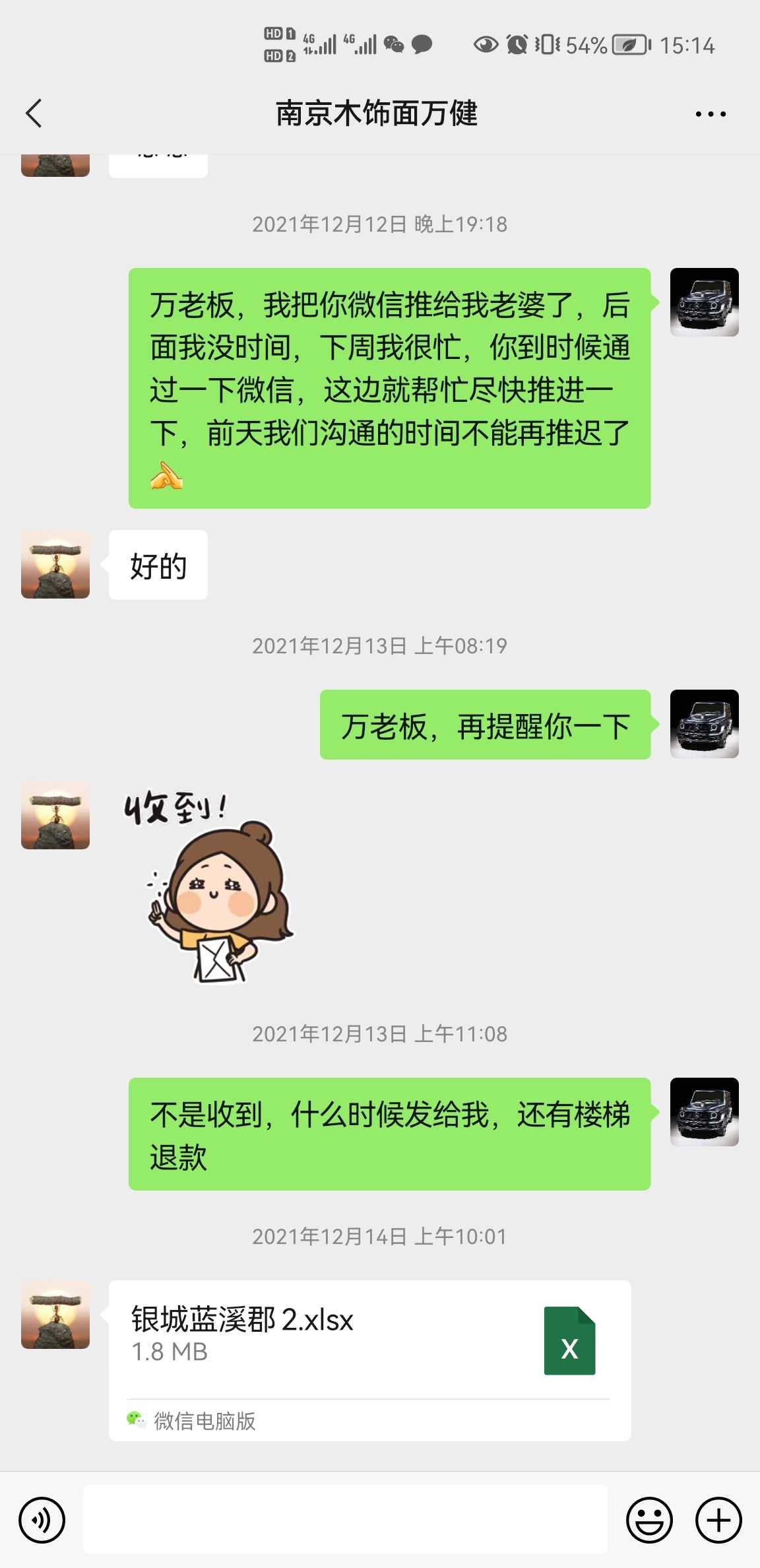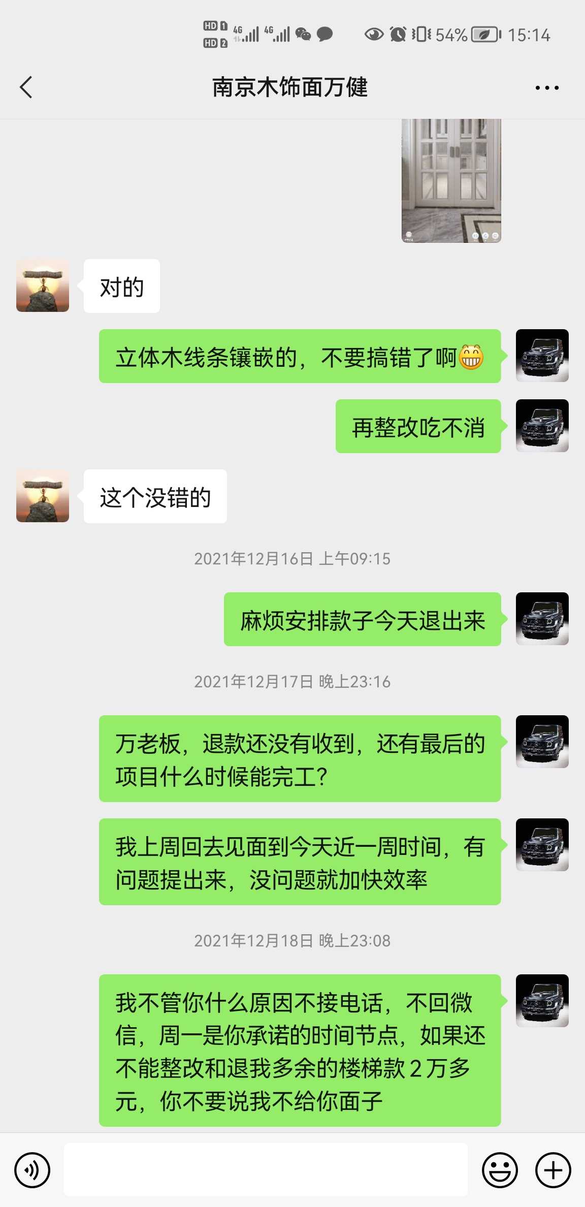 本人2020年底委托南京邦诺家具有限公司安装制作整屋木饰面和木门,还有楼梯制作安装,原计划2021年春节前完工,后拖延至2021年3月底完工,截止到目前工程还没有完全完工,多处工程质量堪忧,整改项目众多,并且其中楼梯项目一直没有制作,应该退还我的楼梯款项30000多预付款也一直没有退还,目前这家公司负责人我已经联系不上,电话不接,微信不回。 当时是刷卡支付,发票也一直没有给到我,本月我投诉后,六合税务和对方会计联系,当天回复开了发票,但我本人一直没有看到和拿到发票。