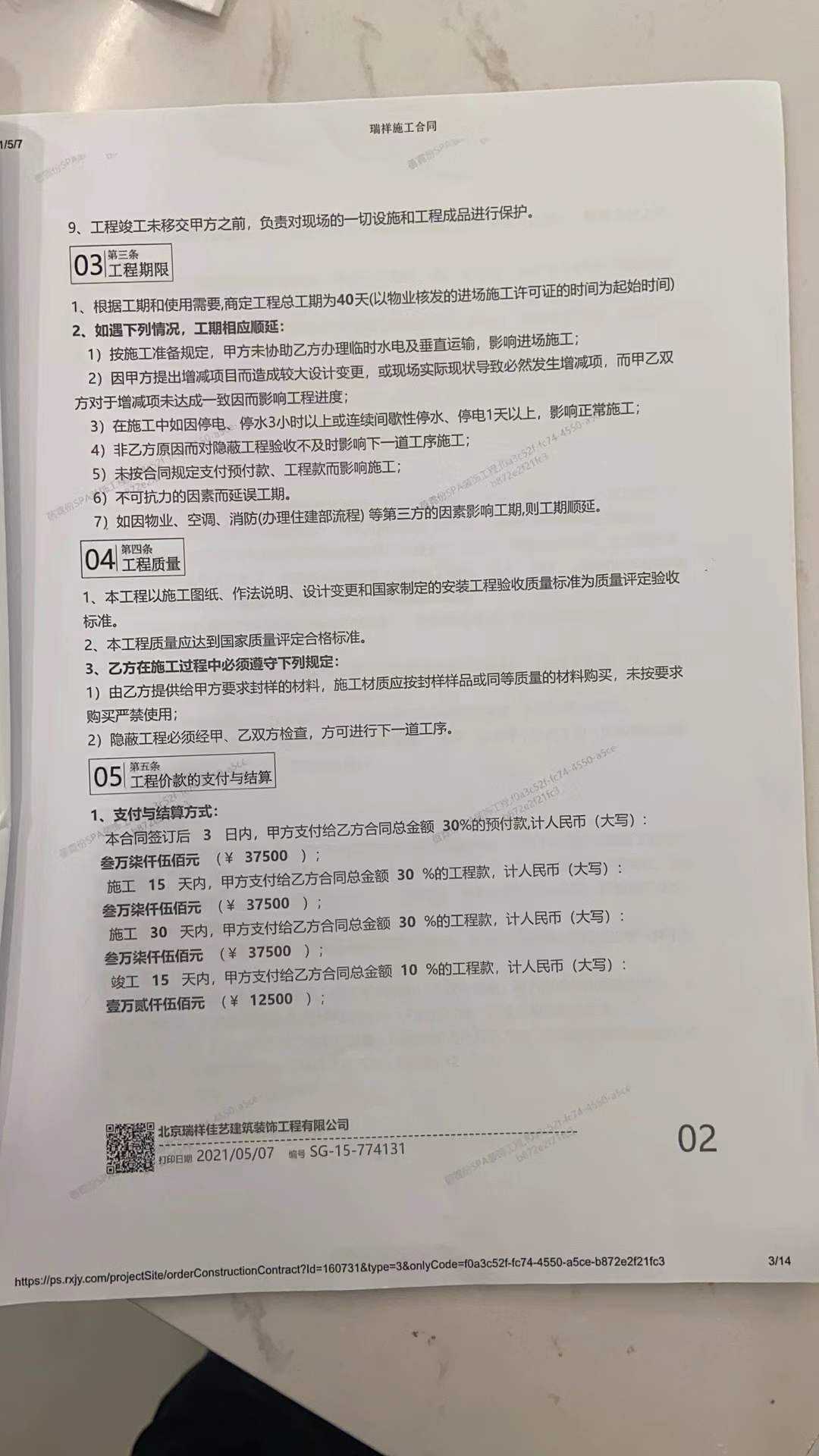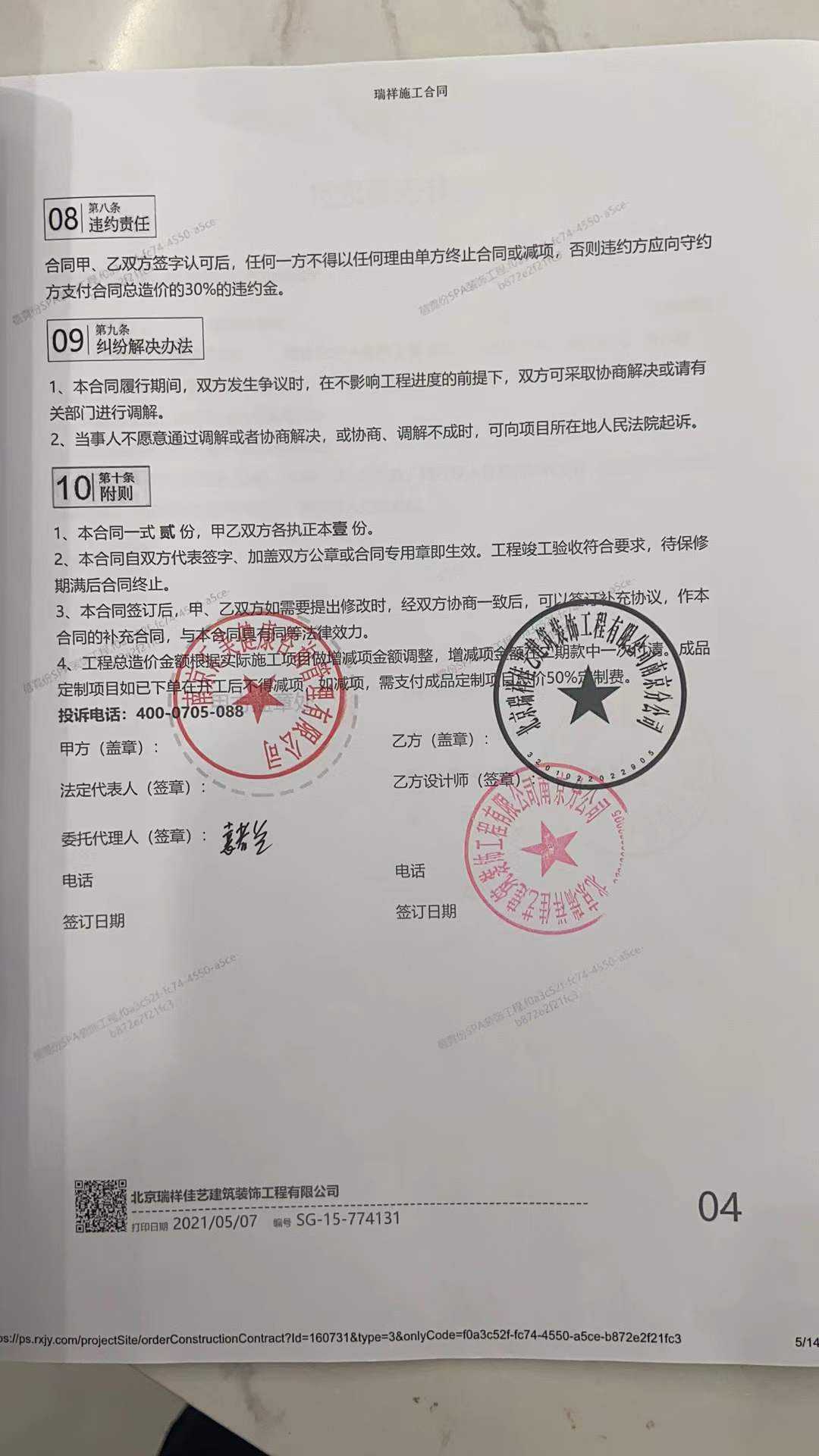 对 瑞祥佳艺建筑装饰 的投诉依据: