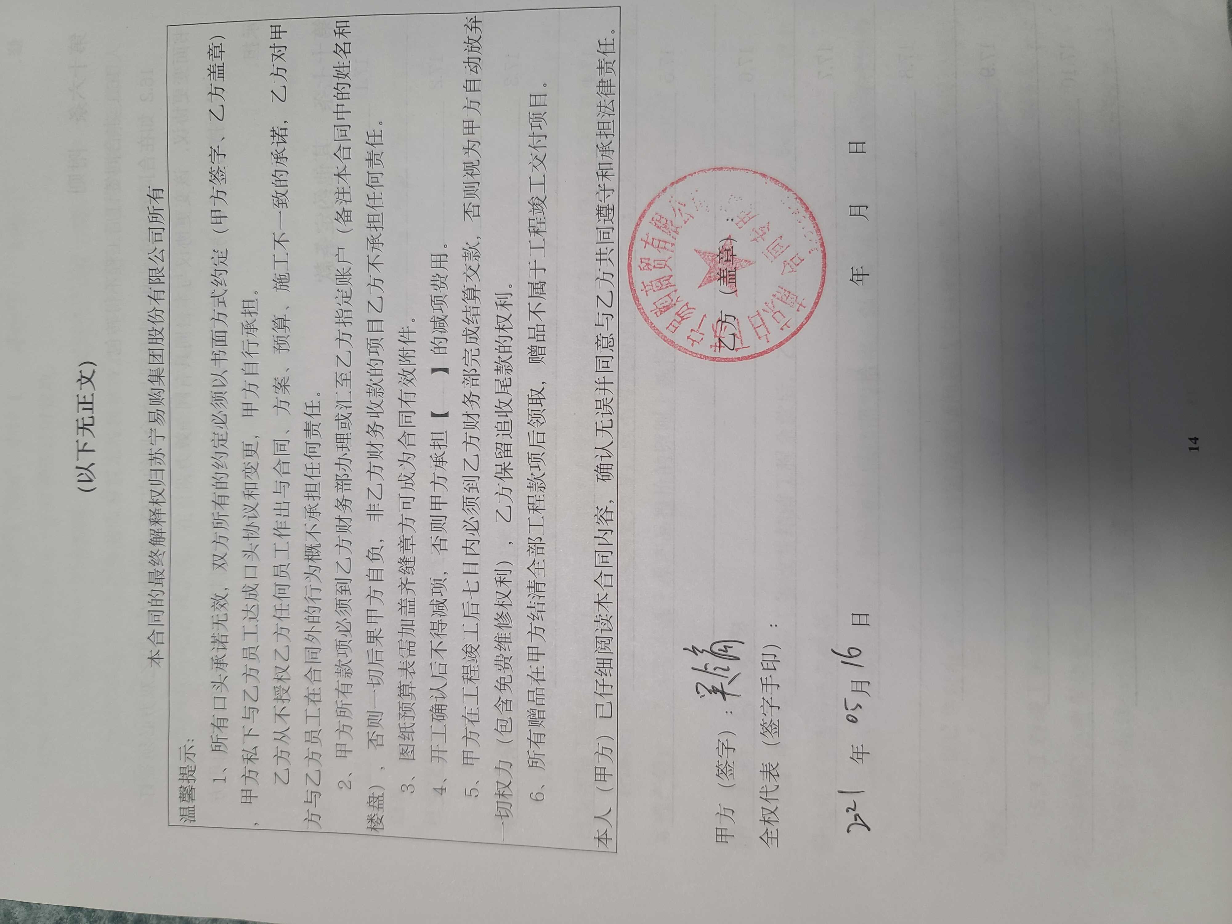 2021年05月16日本人与苏宁签订了装修合同。