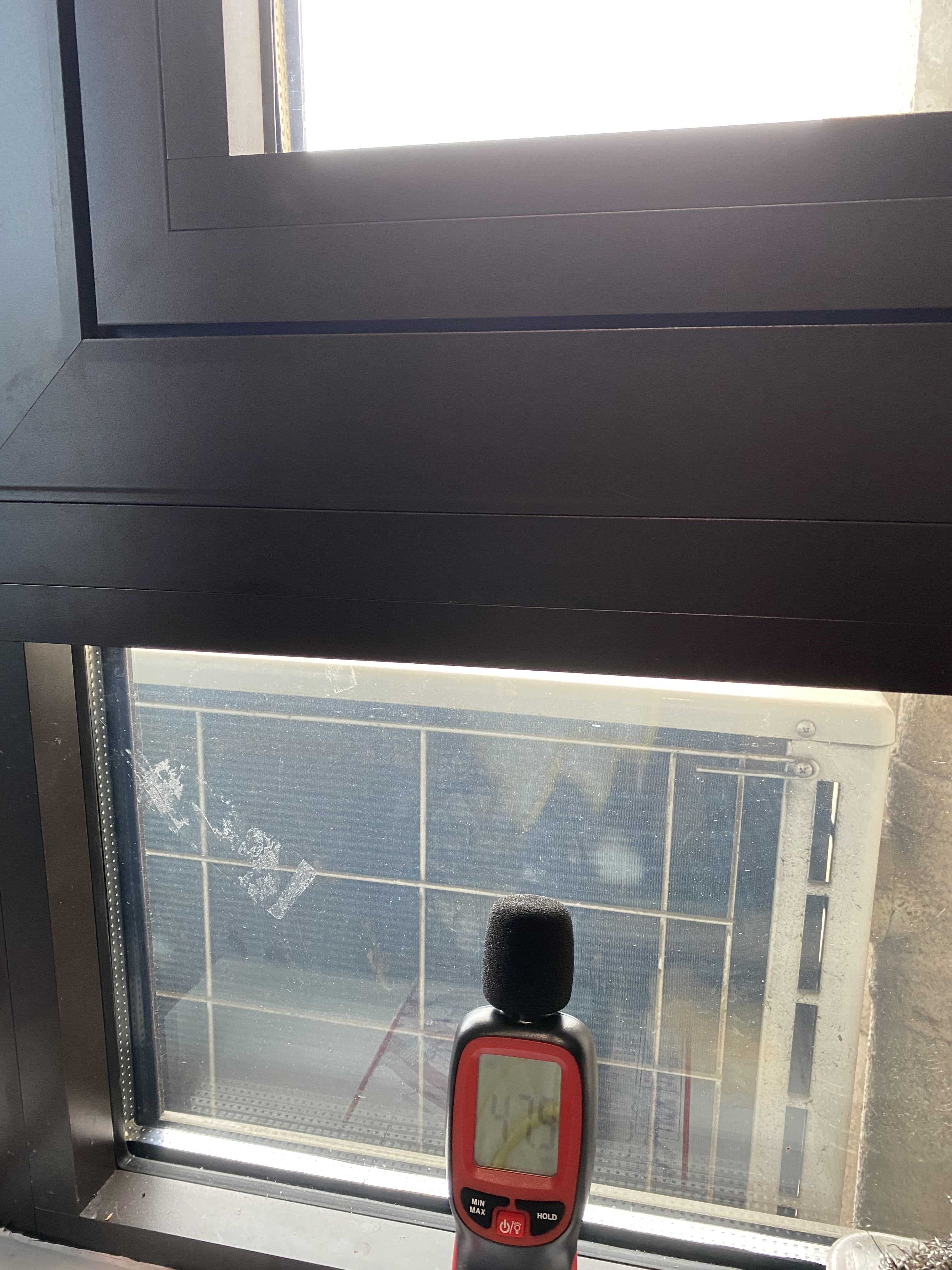 2022年3月3日,工人上门来装后做的纱窗,我当时跟他们提出隔音问题,三个人都说听不到声音,在我的要求下,祝总用他的手机上的分贝仪测量,厕所的窗户开着是是45分贝左右,关上窗35分贝(也是只能隔音10个分贝左右),这个时候他不再承认自己说过关窗户能达到十几分贝,但我表示这跟他微信里留言里的隔音80%也相差太大了。说好的皮条也没有来安装(师傅先来的,说不知道安装皮条这件事,祝总说他们现在没货,等到了再给我安装)。那天我跟他们沟通,觉得可能窗户装的太外了,让他们往里面重新装一下,他们不同意(其中两个卫生间的窗户没有按照图纸安装)。后来我特地买了分贝仪,测量后开窗60左右,关窗在47左右(也就只能隔音10几个分贝)。