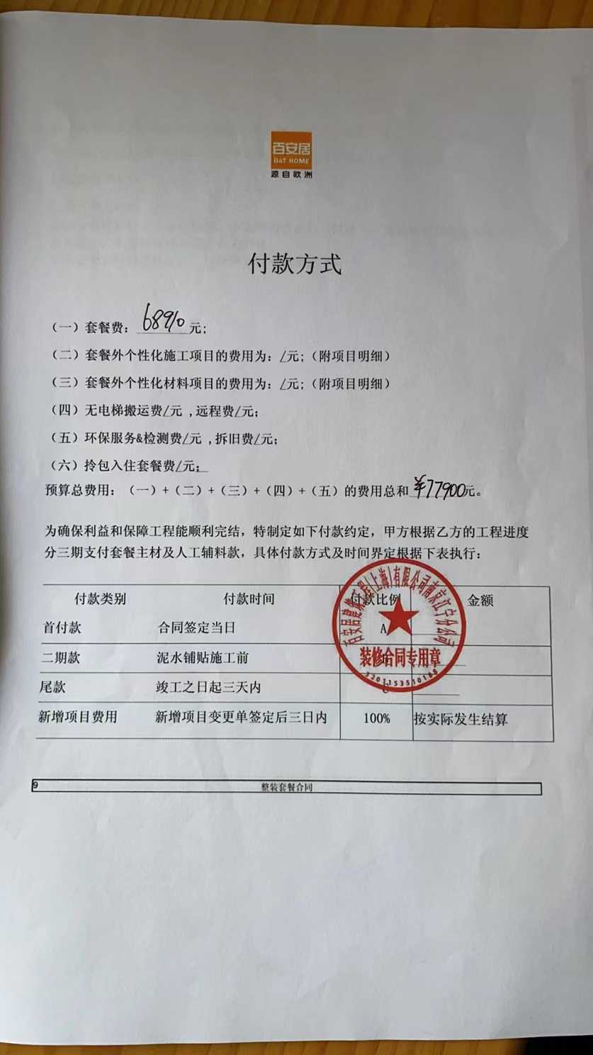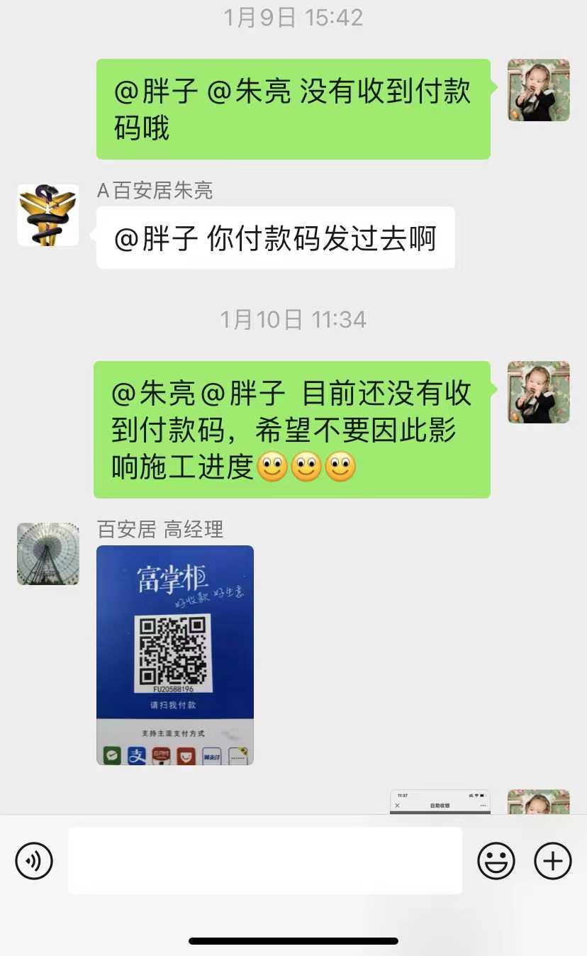 百安居负责人表示,费用在另一位负责人那边,需要找他处理。180BA399915 朱,未接电话。 | 2022-05-13 |