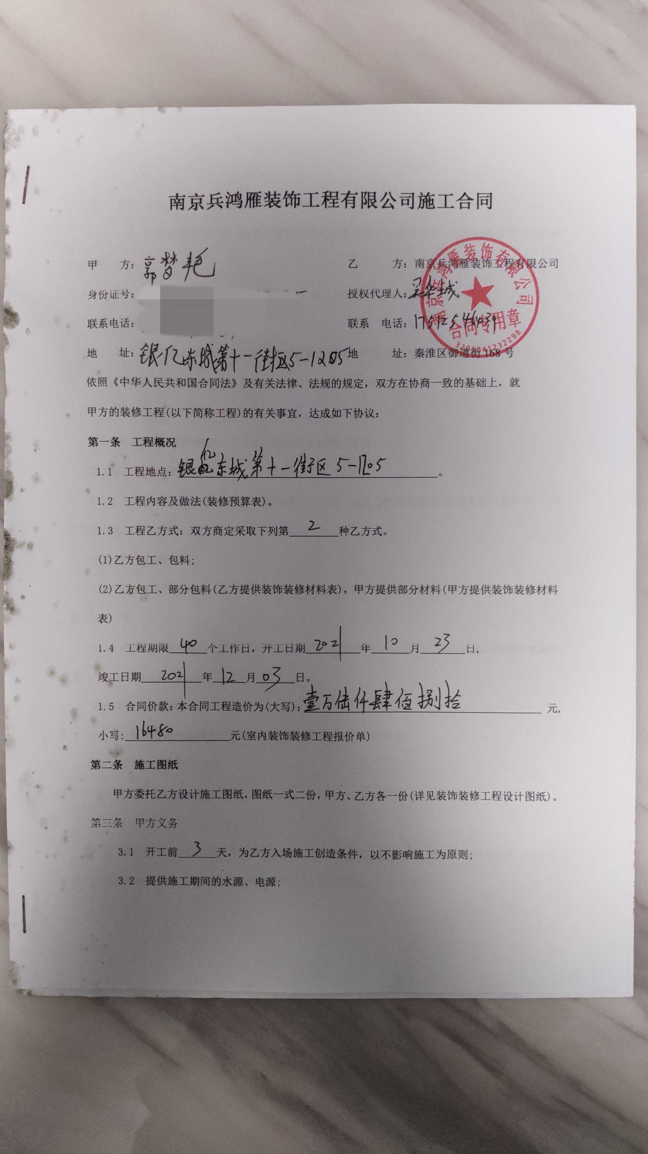 对 南京兵鸿雁装饰工程有限公司 的投诉依据: