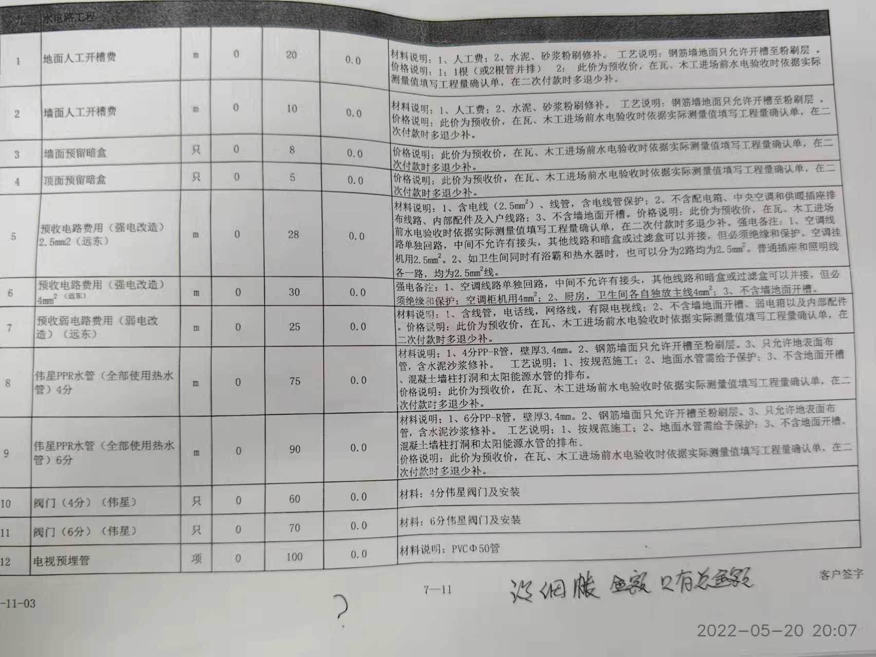 1、偷工减料:原房为精装修,水电改造中乙方为牟利恶意减配材料,致甲方花1.2万“降低水电用料规格”,且存严重用电风险;