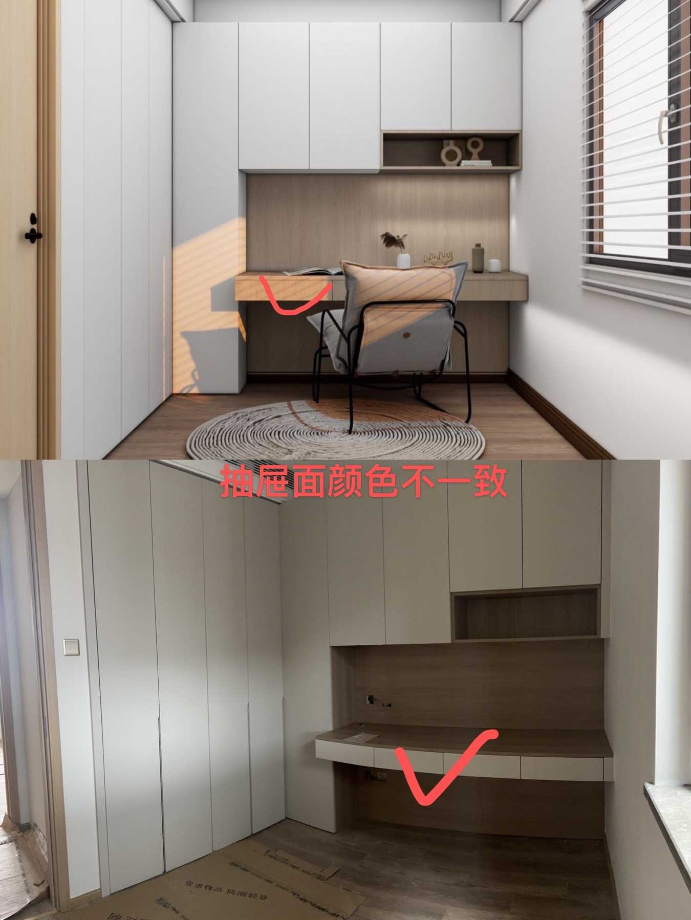 4)书房抽屉面颜色做错,应该做成全木色面,具体情况同3)