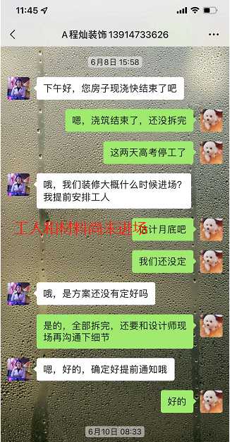 | 投诉类型 | 不讲诚信 | 投诉人 | 赵** | 被投诉单位 | 南京程灿装饰工程有限公司 |
