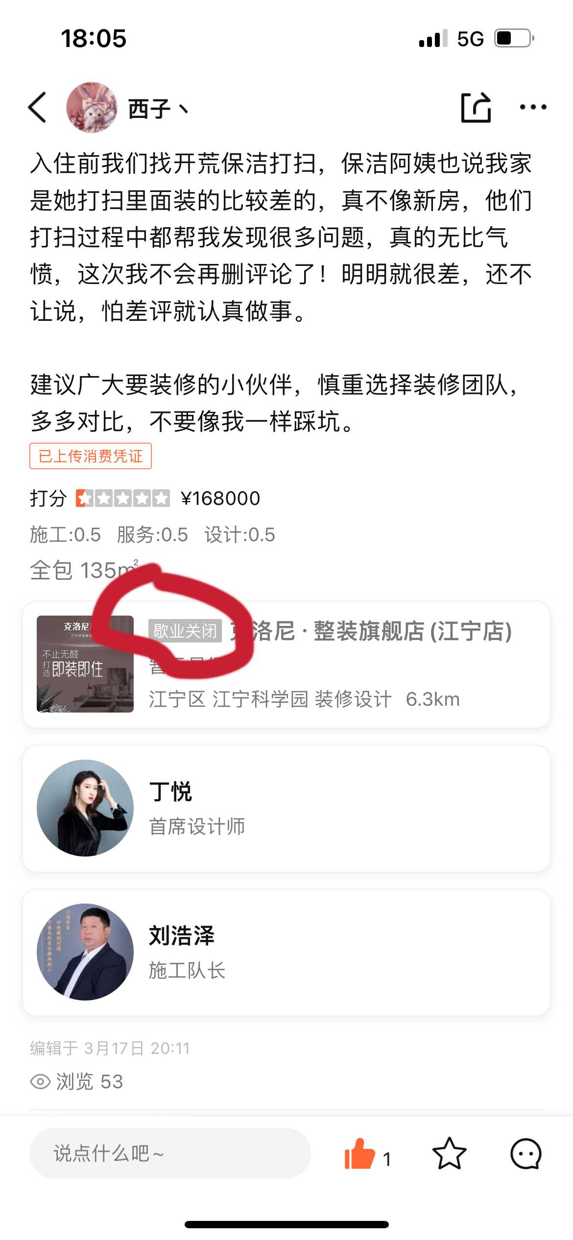 巧创空间齐家典尚 所在卖场:南京装修公司,点击查看此卖场相关投诉信息