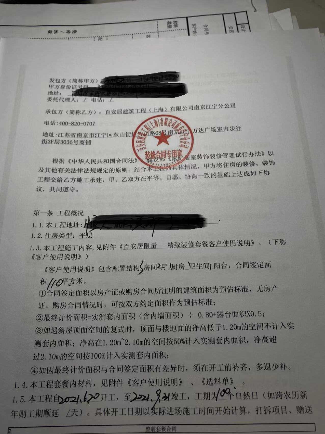 附图1:装修合同,规定装修时间为2021.6.20-2021.9.31,现已严重超期。