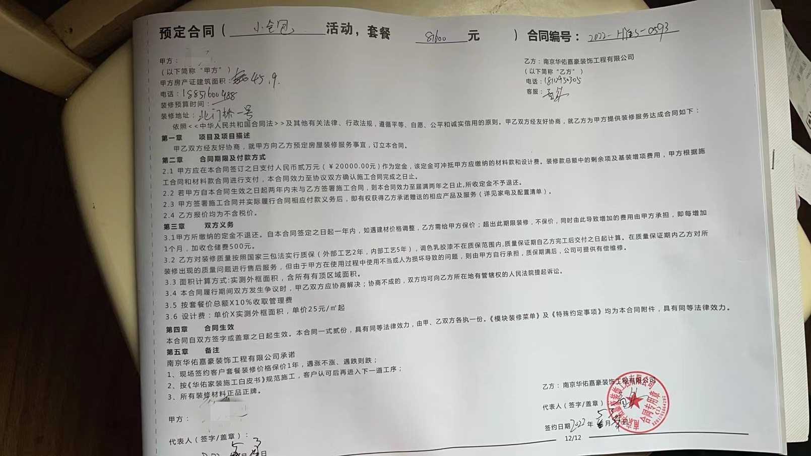 对 华佑嘉豪装饰 的投诉内容: