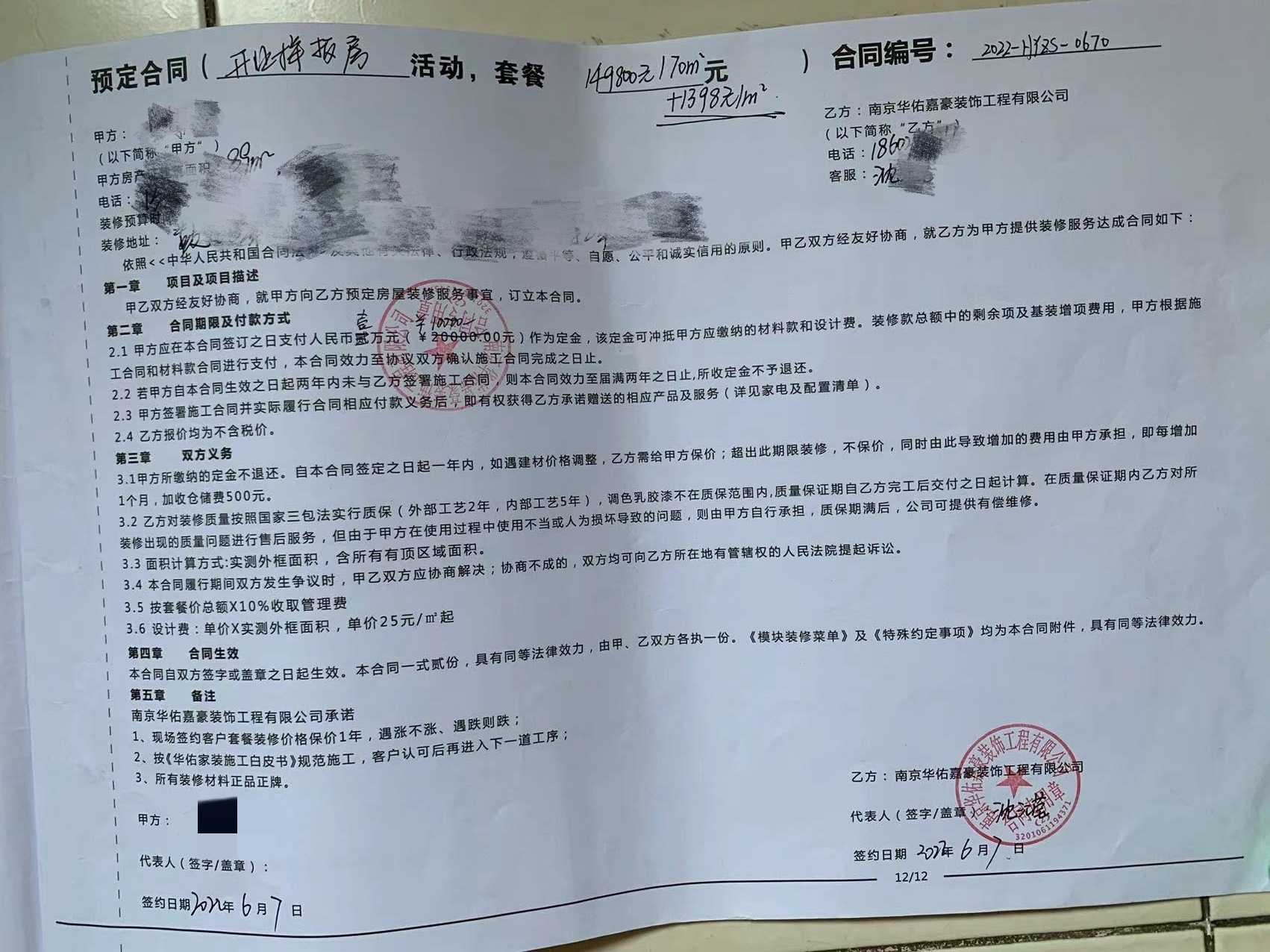 南京华佑嘉豪装饰 所在卖场:南京装修公司,点击查看此卖场相关投诉信息