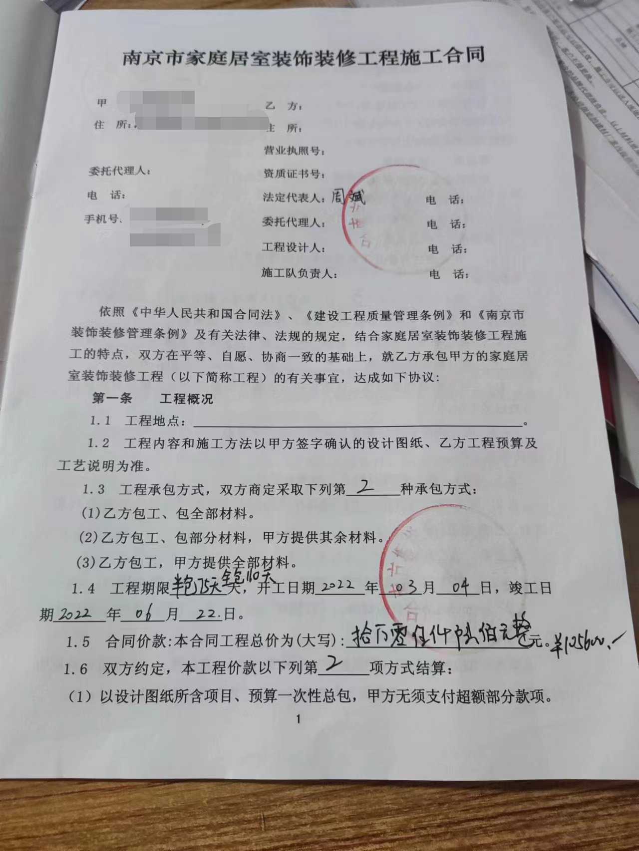 2021年10月24日找南京振祥装饰有限责任公司装修,中间家中有事,实际为2022年3月4号开工。