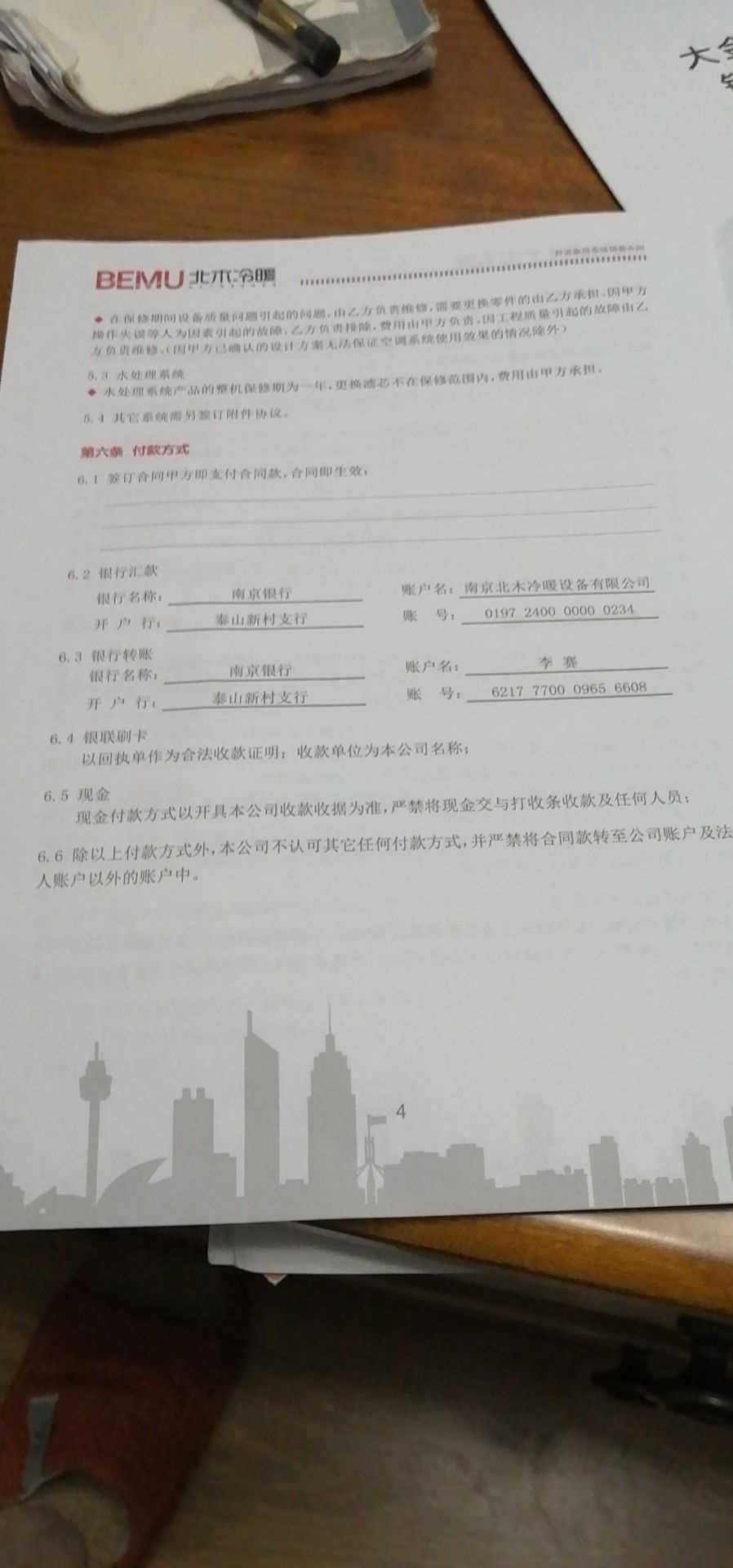 对 南京北木冷暖设备有限公司 的投诉依据: