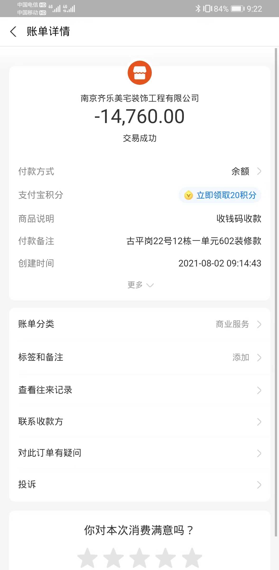 齐乐美宅装饰 所在卖场:南京装修公司,点击查看此卖场相关投诉信息