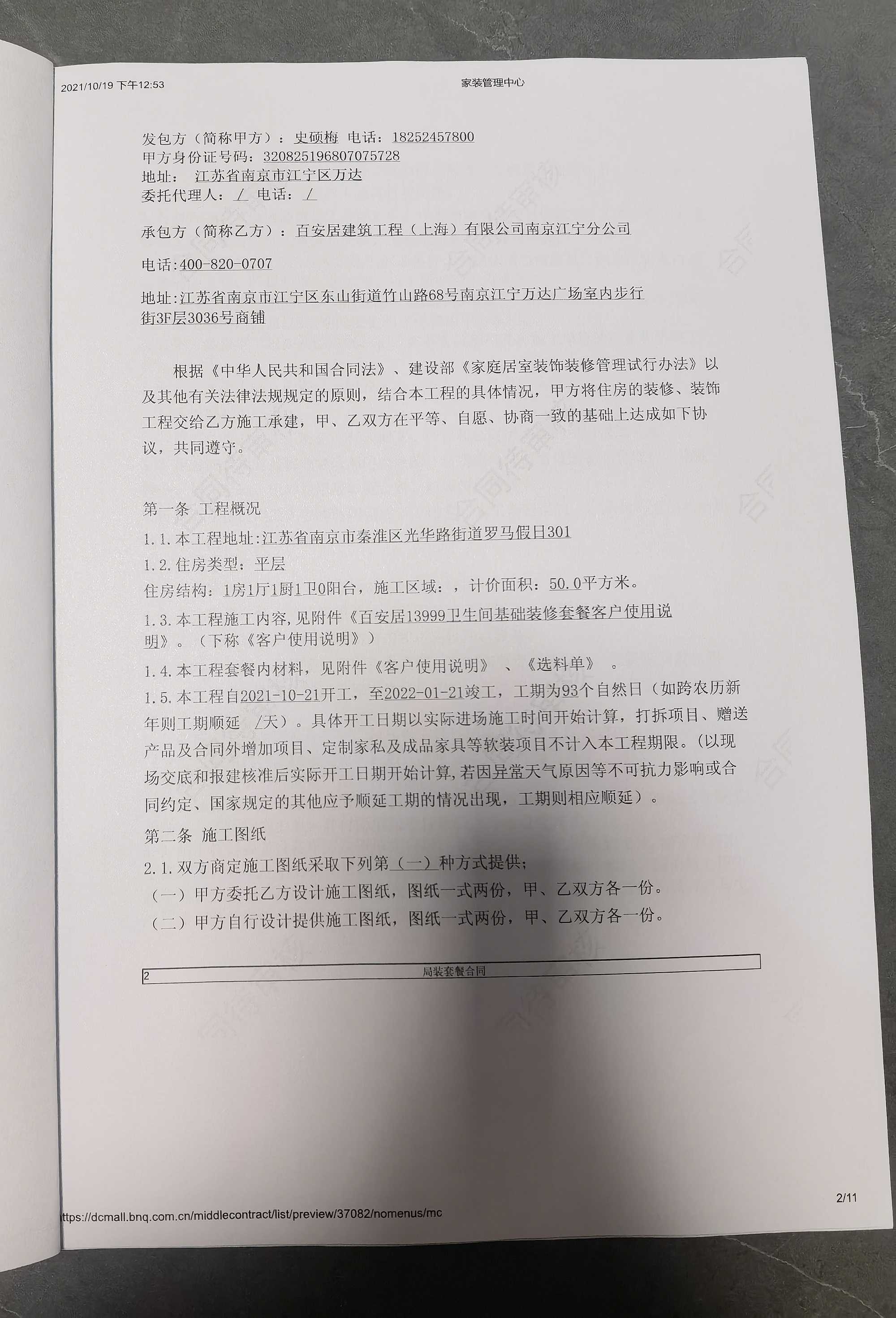 | 投诉类型 | 拖延工期 | 投诉人 | 史** | 被投诉单位 | 百安居江宁万达门店 |
