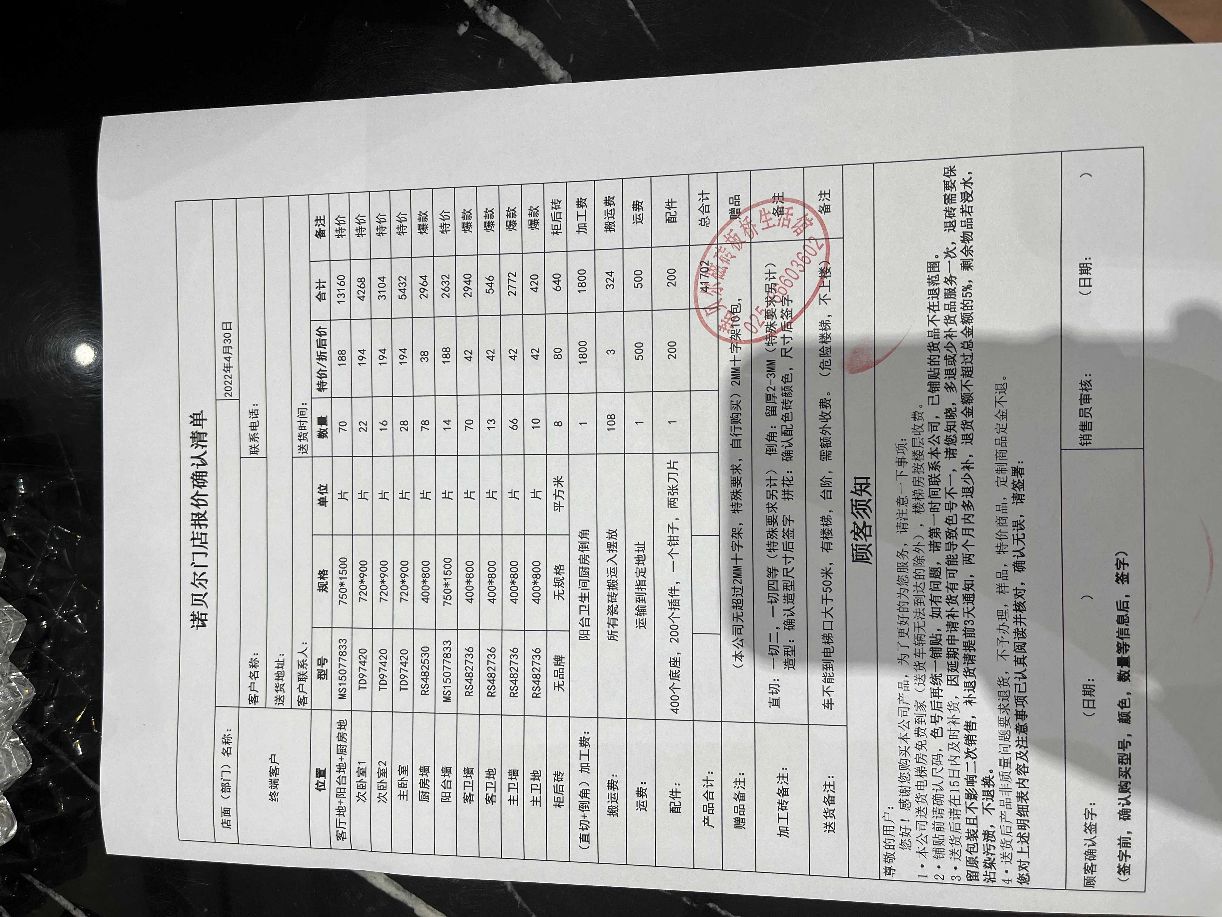 诺贝尔瓷砖专卖店周总知晓此事,积极处理中,但事关总部不配送。 | 2022-08-22 |