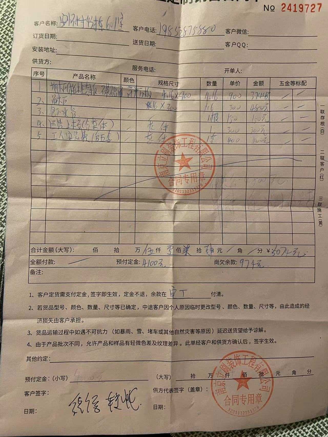 多次言而无信,通过派出所沟通后都无法保证安装时间,半个月过去,任何材料和工人未见。