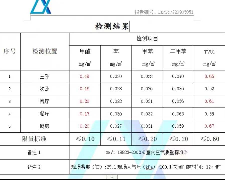 一、房子环境质量检测未达国家标准的问题。 房主于2022年9月委托“蓝莘环境检测公司”对房子装修的环境进行检测。检测结果表明:房子的5个检测位点的甲醛全部超标,3个TVOC位点超标。 鉴于以上检测情况,房主希望装修公司尽快处理房子甲醛和TVOC超标问题。