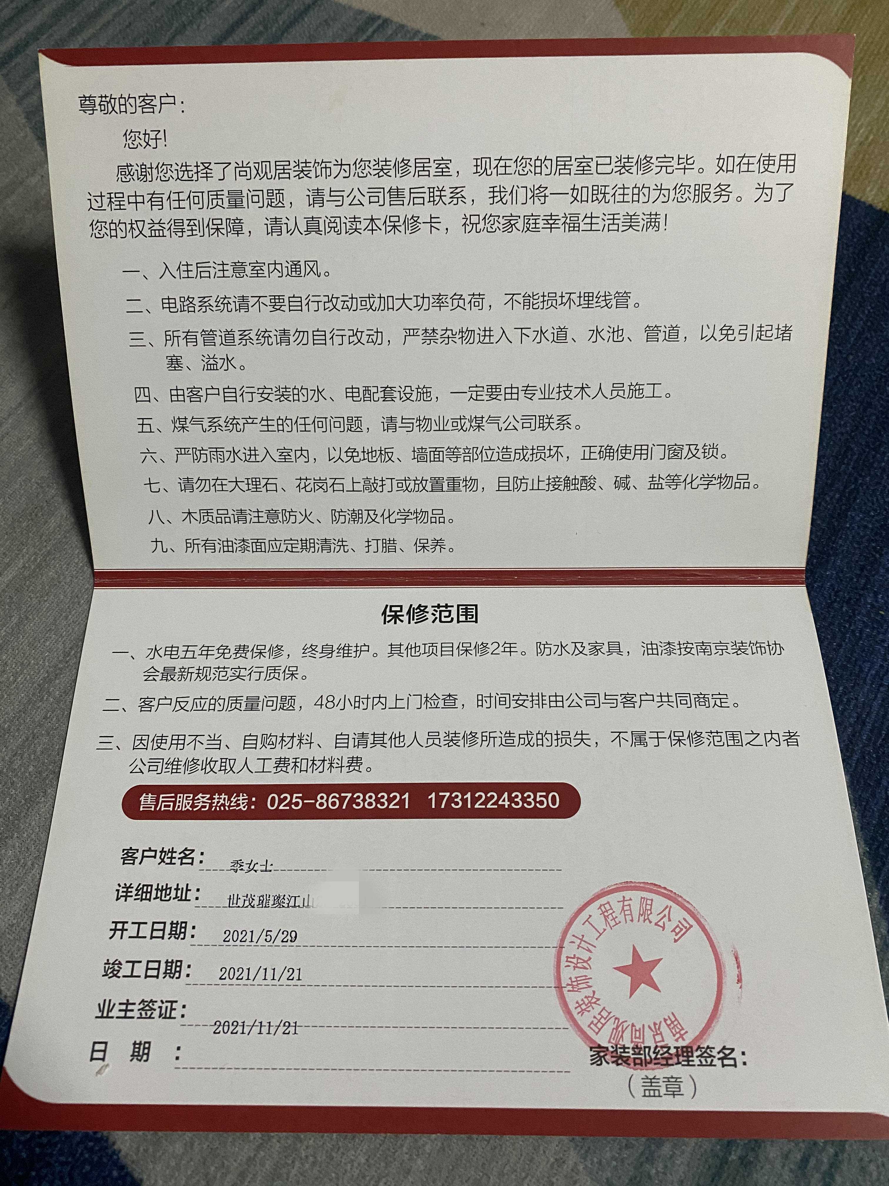 尚观居装饰 所在卖场:南京装修公司,点击查看此卖场相关投诉信息