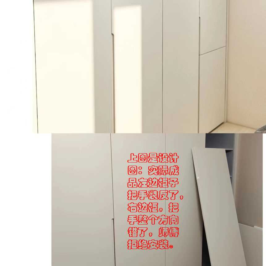 (4)设计不能实现。本人与设计师沟通好次卧床头柜板子设计成隐藏拉手上翻设计,最终成品未实现。