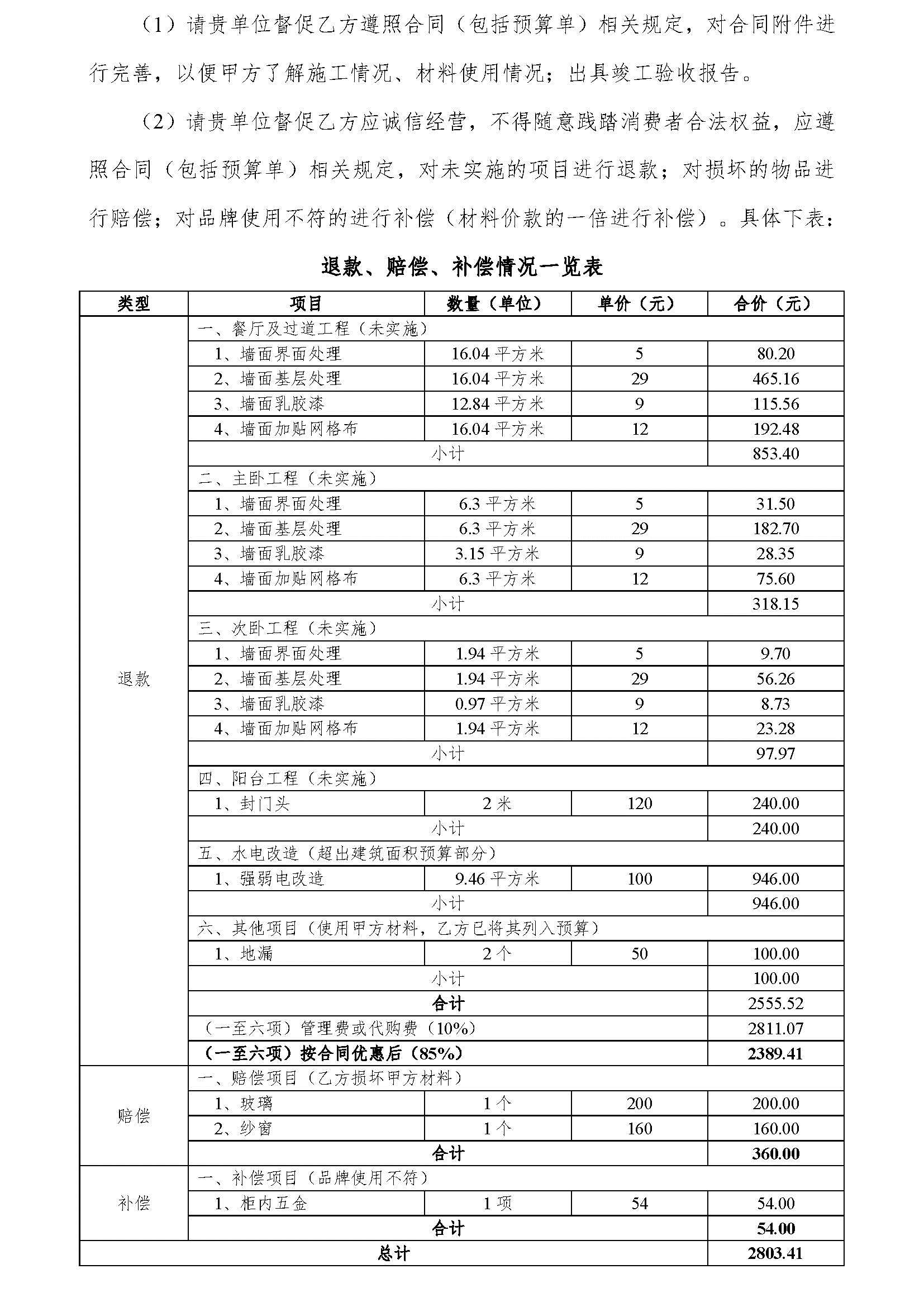 | 家装消费维权专委会消费者投诉站 处理结果 | 回复时间 |