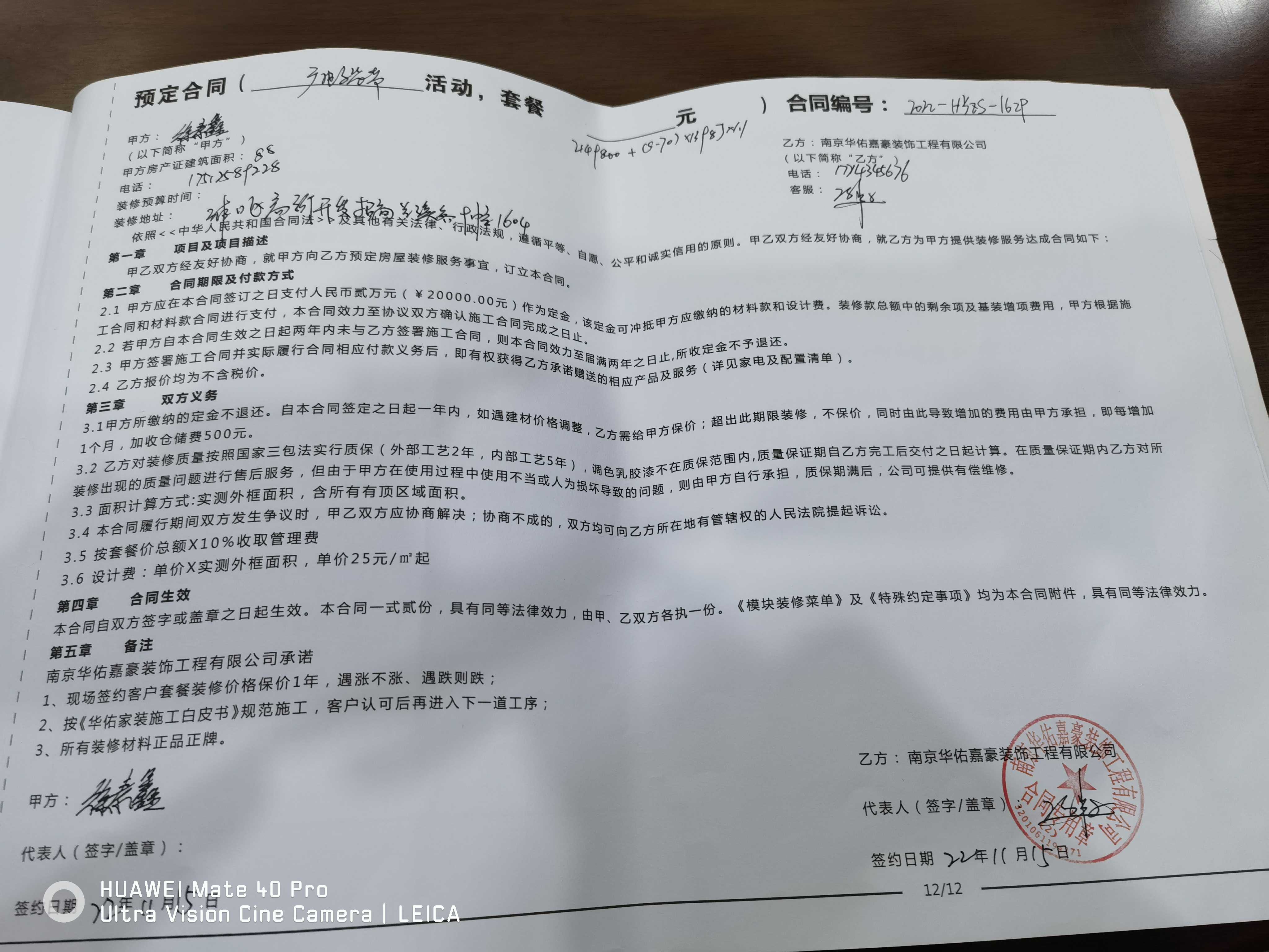 PS:消费者再次选择华佑,签订合同,证明是带着诚意。但签订合同之后货款与前期沟通的不一致,华佑是不是也该寻找一下自身的问题。 | 2022-12-08 |