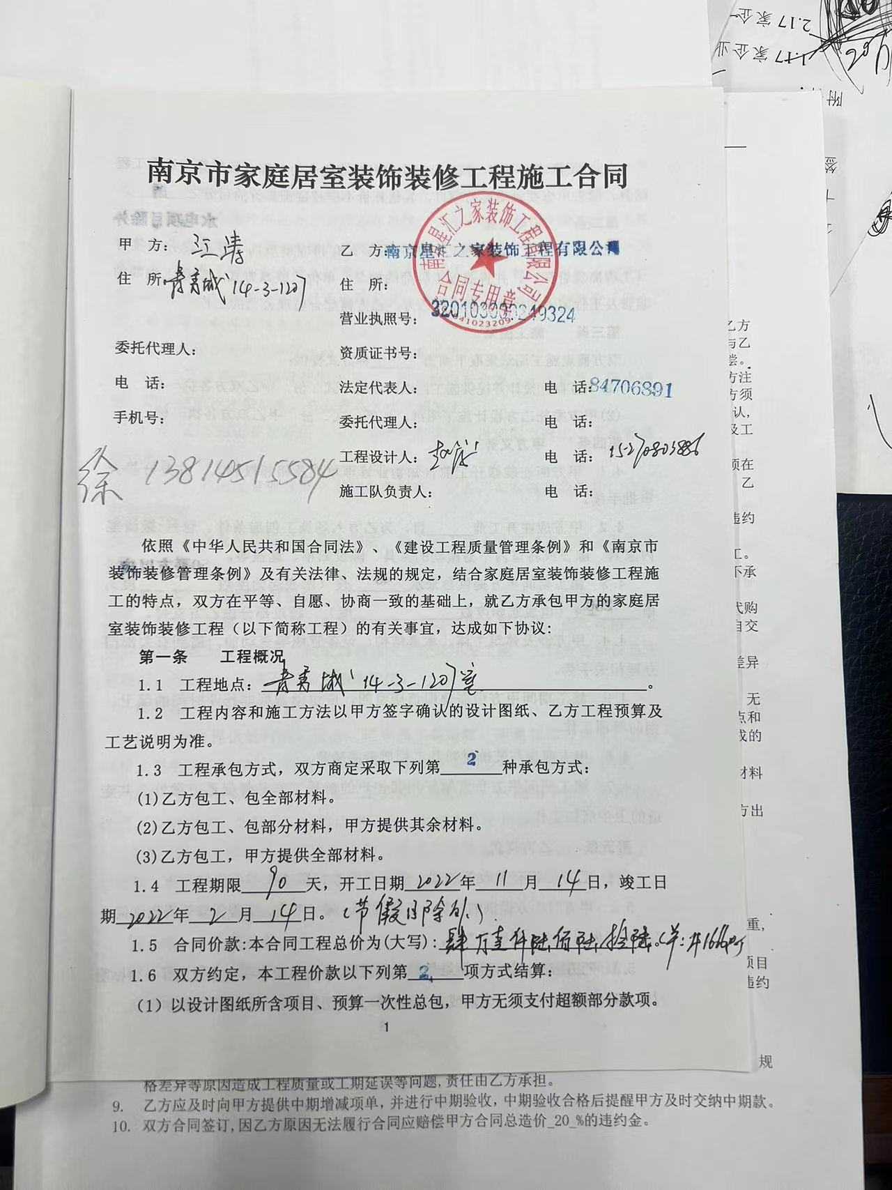 南京星汇之家装饰工程有限公司不按合同履行义务,额外要收取业主贴瓷砖辅材(背胶,粘合剂)1400元。合同里已经函了贴大瓷砖所含的辅材费用(110元每平方)。这个费用已经在合同里,不该业主再交费用。