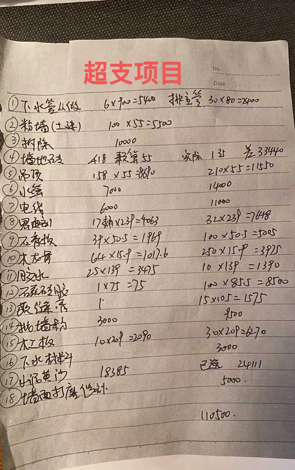 工程造价报价约57万200平,目前装修进度水电尚未完成,且无工程大改动的情况下已报超支11万,经与百安居核实涉及5类18项问题,其中4类问题包括