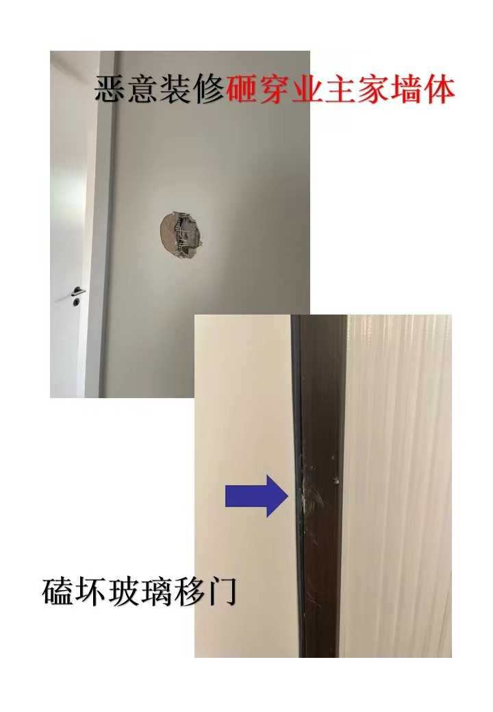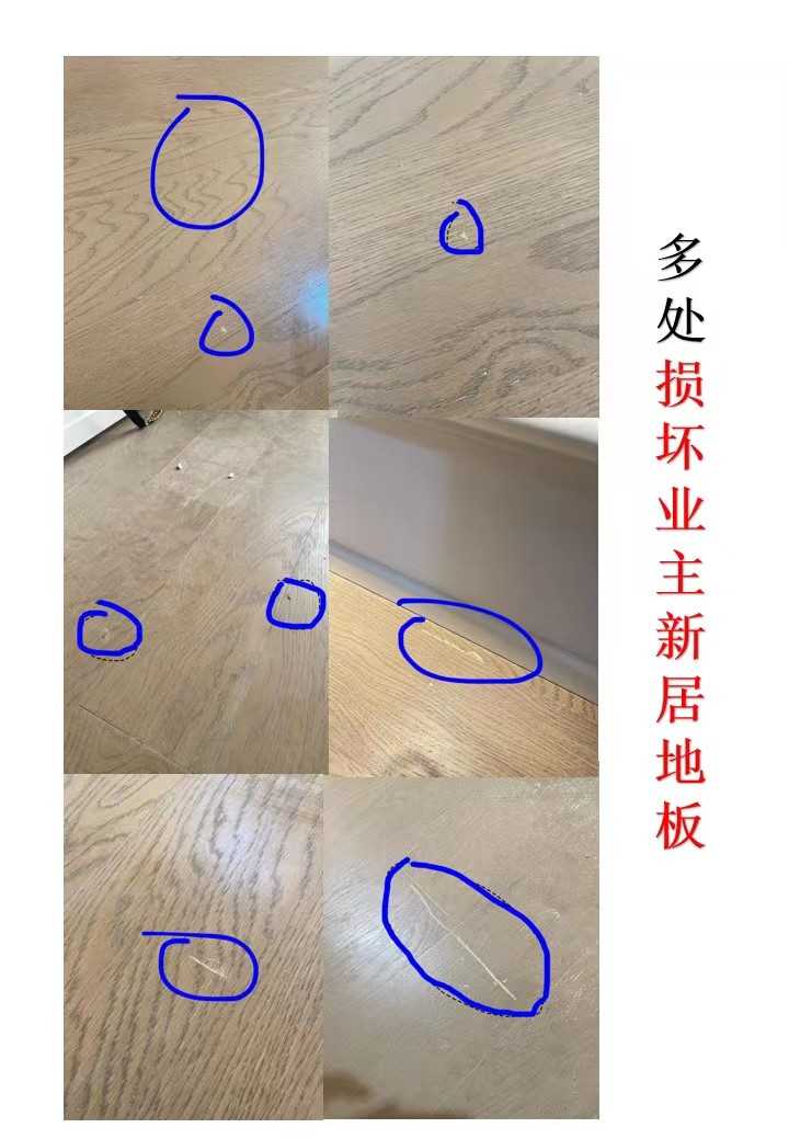 4.禾木匠破坏式装修给我家带来了很多不可逆的损坏,包括墙体被砸穿,多个开关面板损坏,地板多处磕洞损坏,空调出风口面板破坏。
