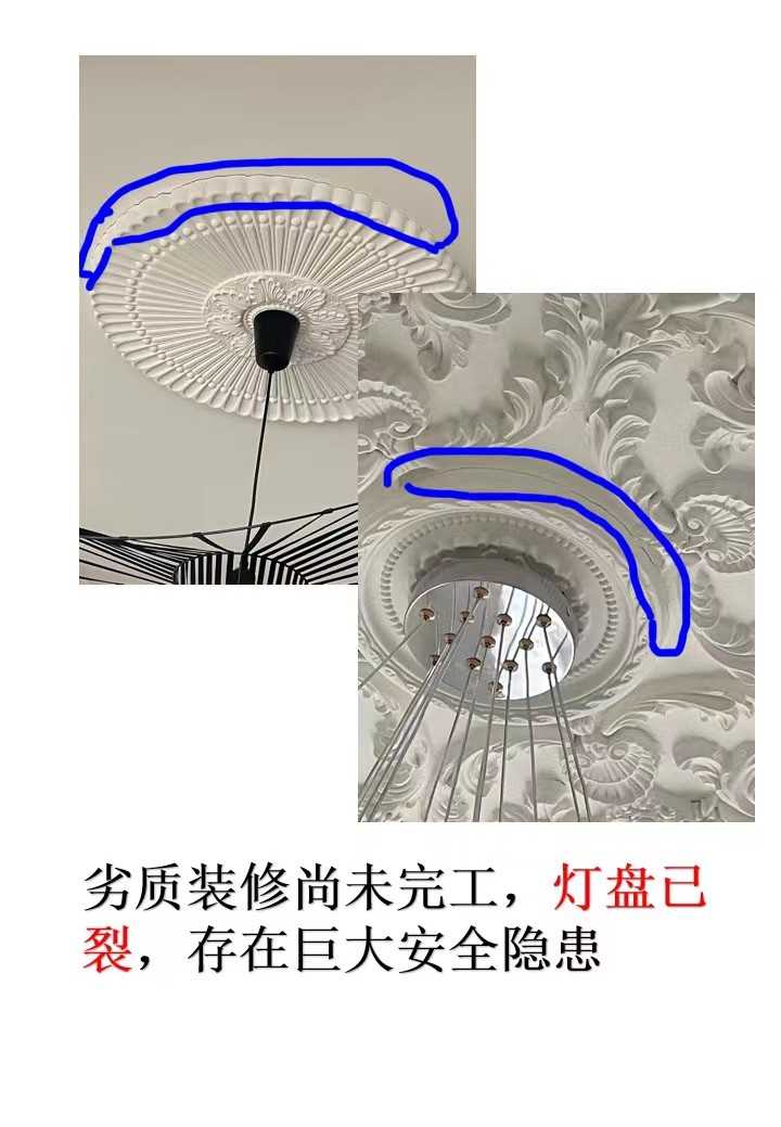 2.装修质量极差,禾木匠装修公司在装修期间未经业主允许擅自将我家拆除的移门偷走。采用劣质装饰材料装修,尚未完工就出现了多出破裂,包括玻璃砖裂开,顶面灯盘开裂,给我家带来了严重的安全隐患。