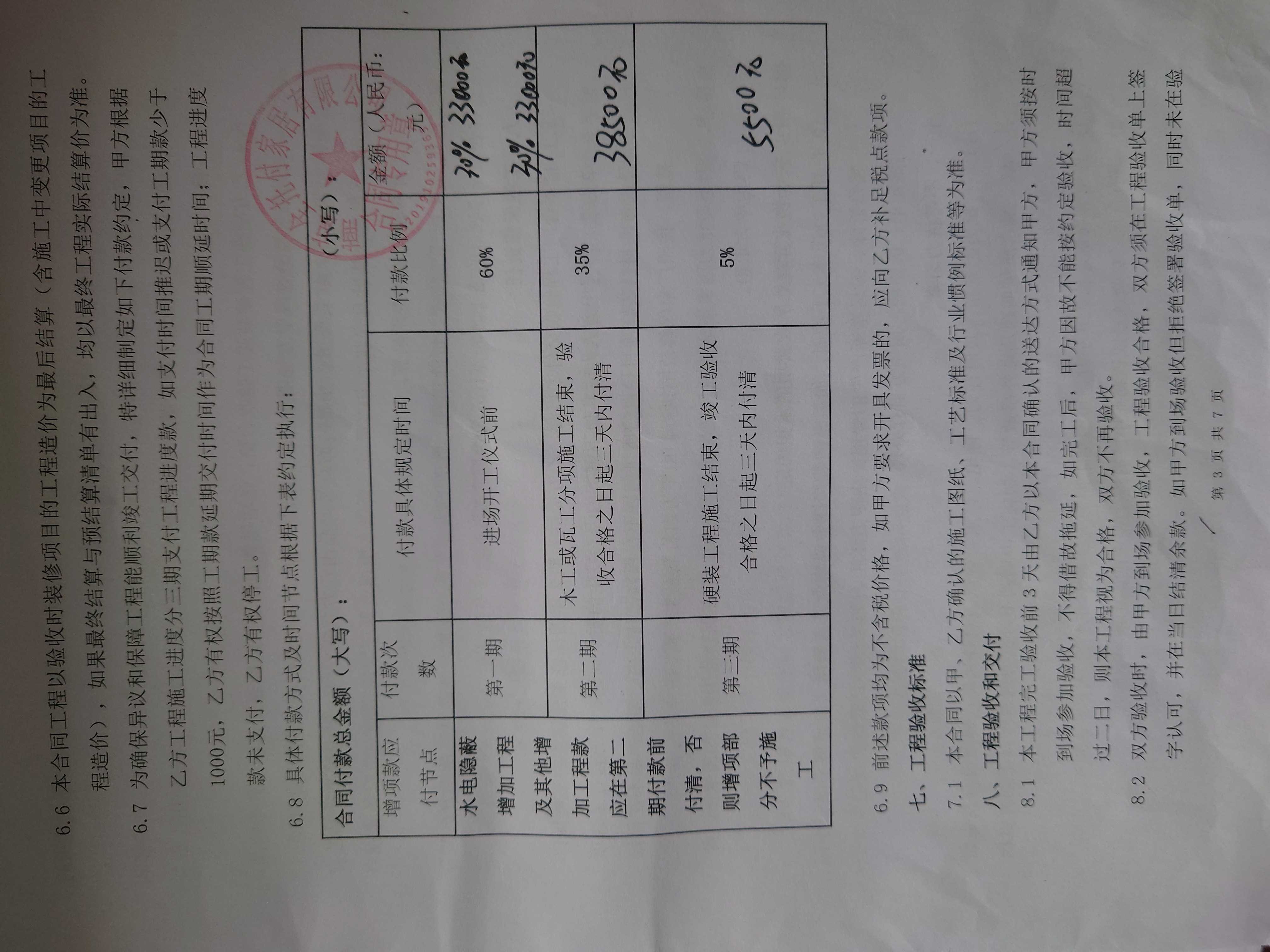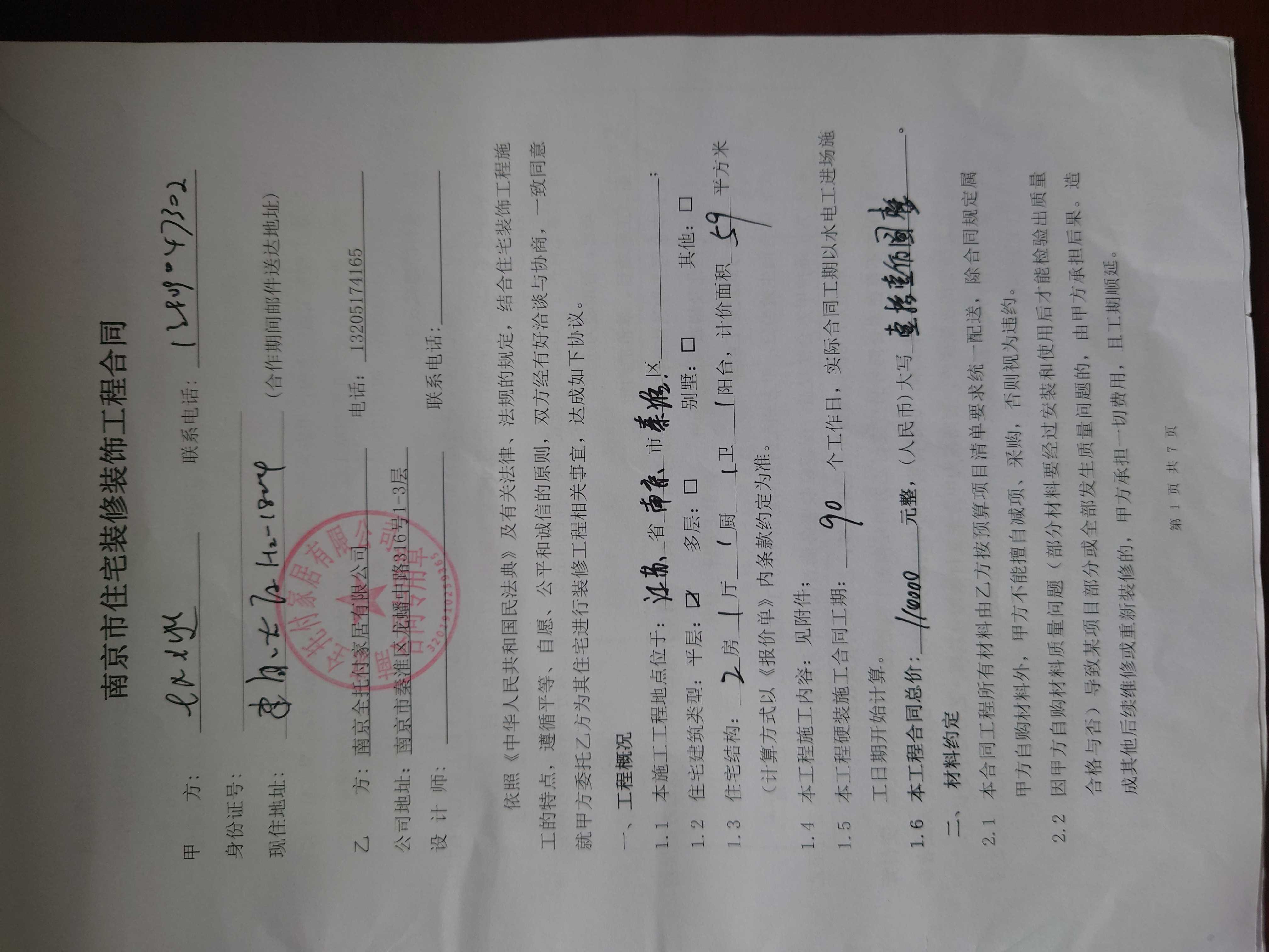 2、合同上的材料和使用的材料不一致。【木门变得复合门】,需要更改。