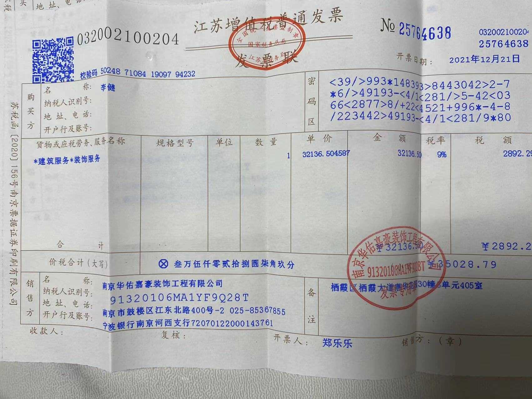 对 南京华佑嘉豪装饰工程 的投诉依据: