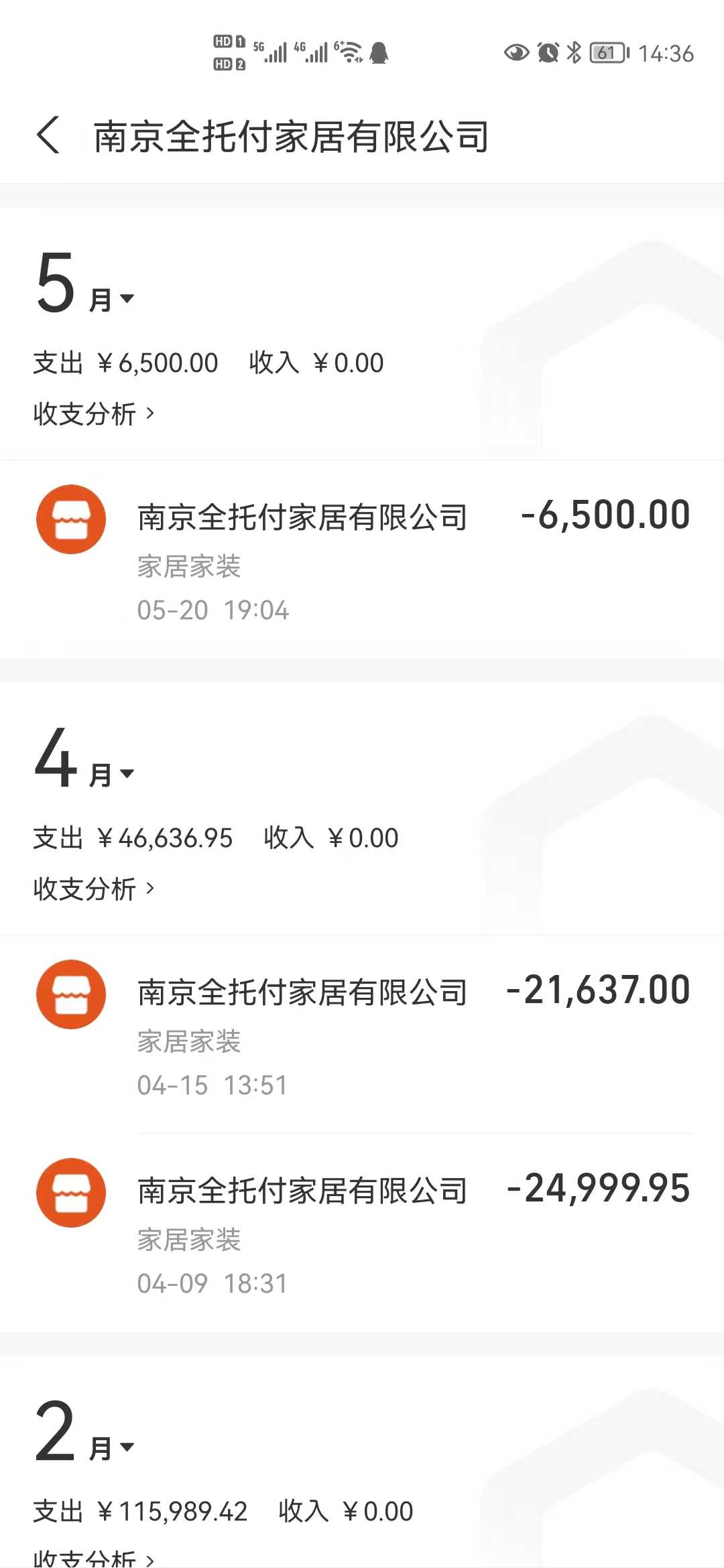南京全托付家居有限公司 所在卖场:街边店铺,点击查看此卖场相关投诉信息