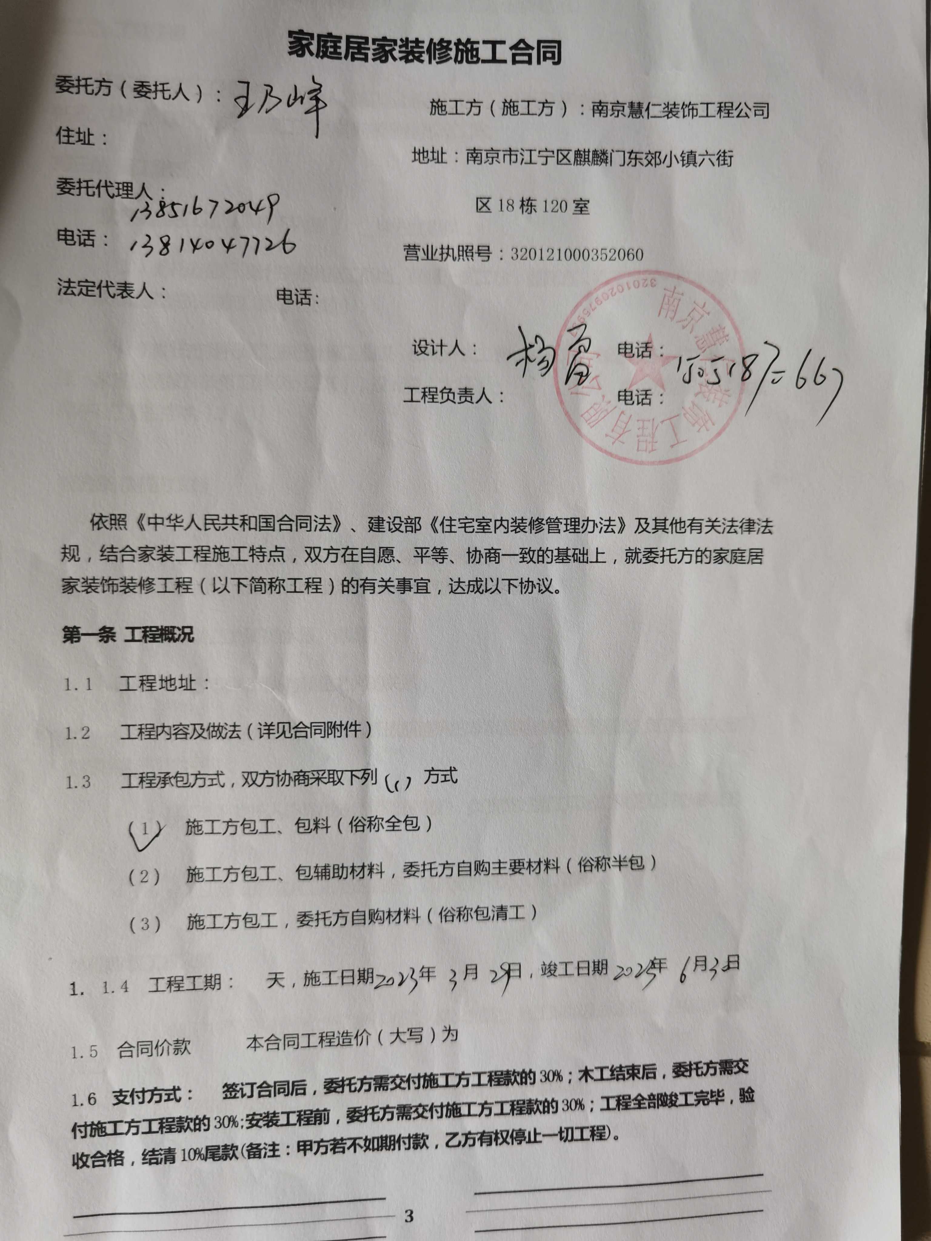 南京慧仁装饰公司 所在卖场:南京装修公司,点击查看此卖场相关投诉信息