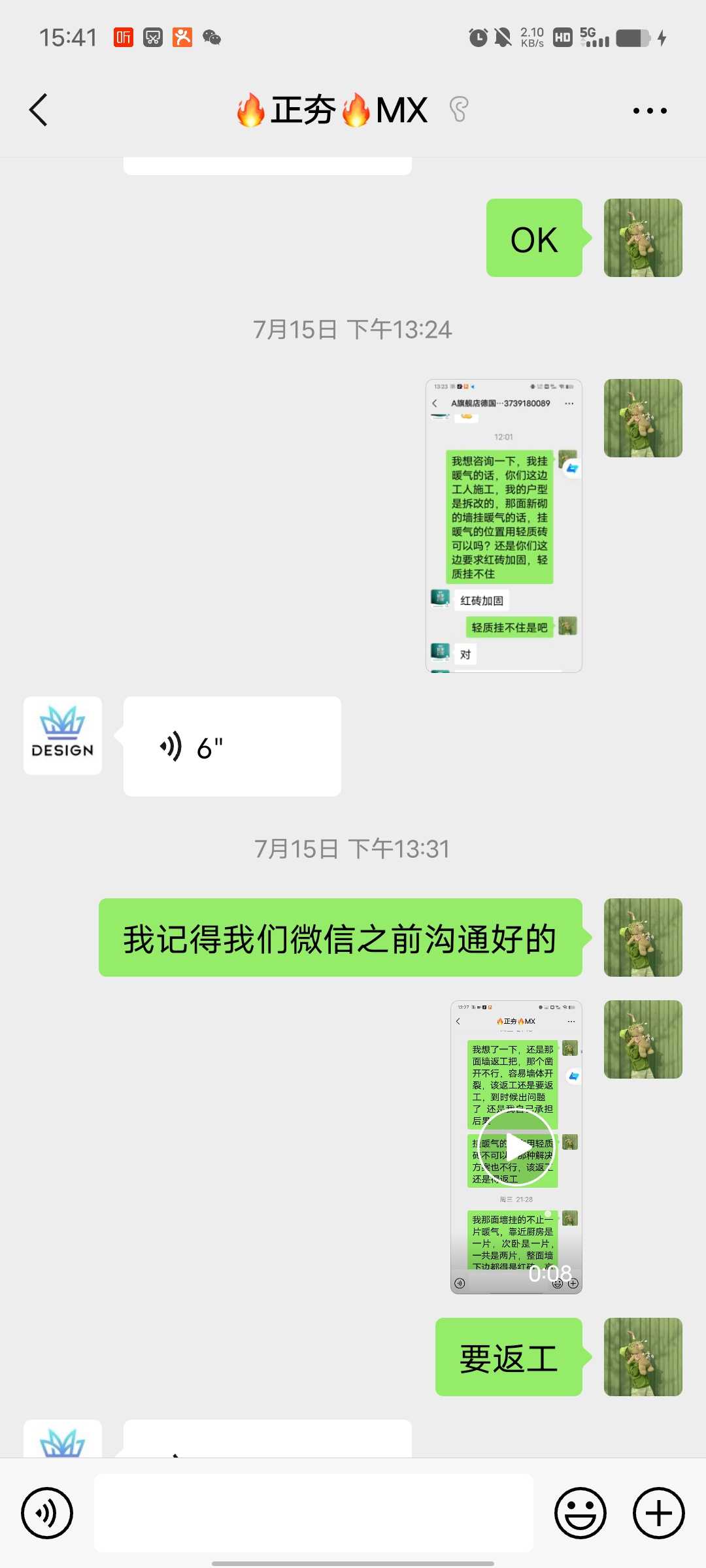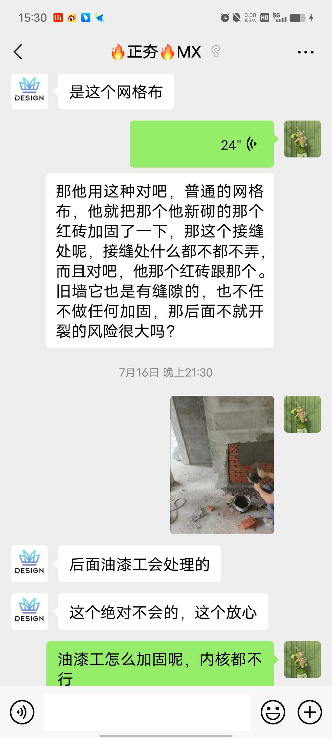 2.砌墙工程极其不规范,未用红砖加固,对于要挂两面暖气的墙体,居然未用红砖加固,全部用了轻质砖,公司称不需要红砖加固,红砖加固属于心理安慰,在业主极力要求下也不返工,最终装修公司的处理方式居然是在墙体最下边凿开一个长方形加了红砖,但并未在旧墙与新墙之间做接缝加固,给日后墙体开裂下沉增加了风险,业主完全不同意,要求接缝处加固,公司称完全无影响,无法沟通的情况下,最终逼迫业主不得不与该公司提出中止合作,但该公司本来根本不愿意加固,在大家都明确无法合作时,居然不经业主同意,让工人进业主家里对墙面进行了挂网处理,只是为了在中止合作时多捞一笔钱。现场协商中止合作这件事时,该公司态度表现的极其无赖,表明让我们去报警或者去投诉他都不怕。业主由于急于装修,没有太多的时间和该公司一直脱下去,最终被逼无奈被该公司骗走1.7万,而该装修公司只是拆了墙,又砌了墙,砌的墙还不规范,居然拿走业主1.7万。