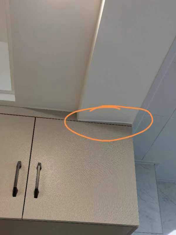 三是客厅橱柜设计一塌糊涂,大门口柜子抽屉关门不能完全拉开,只能开一半;厨房柜子里的抽屉一拉就掉轨;柜体上方不平整。