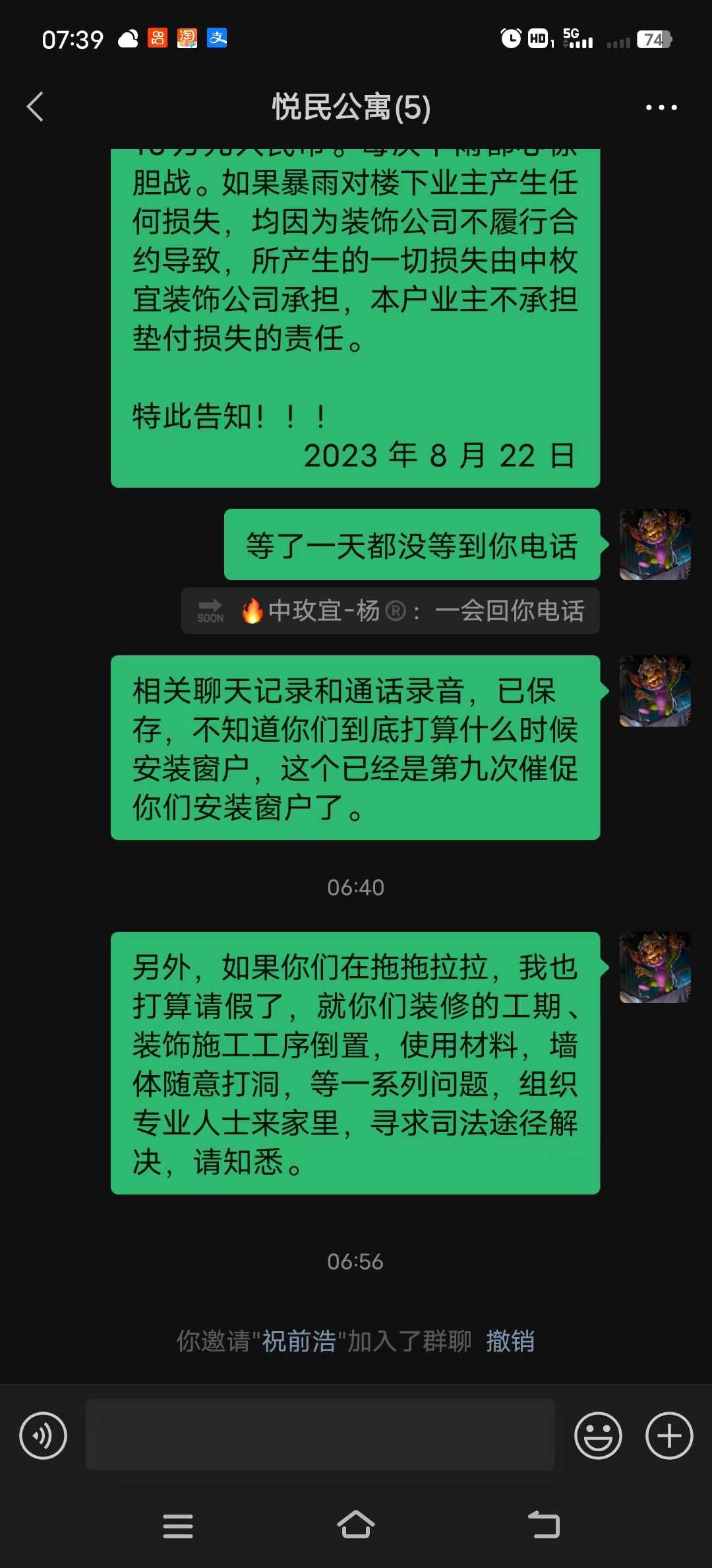 对 中玫官装饰 的投诉内容: