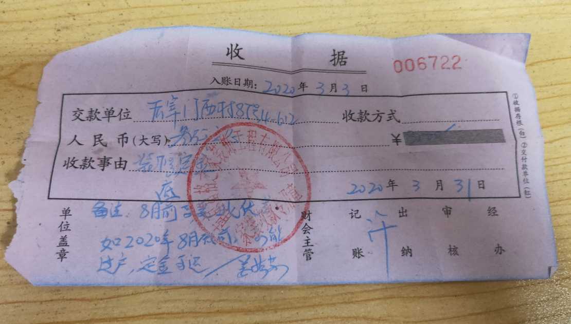此收据为2020年3月31日在此公司为“南京富格之家装饰工程有限公司”当时给我开的凭条,请查收!